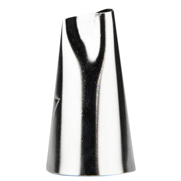 Design delicate frosting decorations with our Pastry Tek #97 Petal Piping Tip. Made from premium stainless steel, this cake decorating tip is conveniently reusable and rust-resistant. With a wavy tip, this versatile icing nozzle creates beautiful realistic flower petals, dramatic ruffles, drapes, swags, and bows. Use this pastry bag tip to create gorgeous drapes on a wedding anniversary cake or design refined roses on top of lemon cupcakes from your bakery. This icing bag tip measures 0.7 inches wide by 1.2 inches tall and fits most disposable and reusable piping bags. Available in a 1 count box.