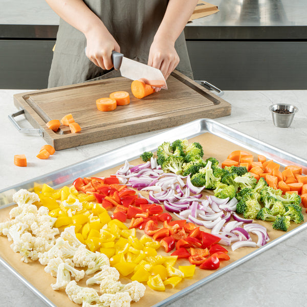 Use fewer supplies in your kitchen while cooking meals with our Pastry Tek Unbleached Paper Full Size Sheet Pan Liners. These full-size, pre-cut baking sheet liners are built with a double-sided silicone coating to avoid ingredients or unwanted oils from sticking onto your pan. To effortlessly bake, fry, or roast your food, these non-stick cookie sheet liners are temperature resistant up to 445F. These greaseproof silicone-lined baking sheet liners are waterproof and odorless to protect your ingredients from being stripped of their flavors. The unbleached high-fiber density paper construction in these silicone cookie sheet liners is created for long-lasting use. These reusable cookie sheet liners are made with wood pulp and are commercially compostable. These sheet pan liners measure 16 inches long by 24 inches wide. Sold in a 1000 count box.