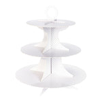 Elevate your dessert displays with this Pastry Tek White Cardboard Cupcake Stand. Featuring a gray polka-dotted print and 3-tier design this disposable cupcake stand is an attention-grabbing way to serve sweets for any occasion. The multi-tiered design creates the ability to serve a wide selection of desserts or finger foods, while the sturdy cardboard construction easily supports the weight of heavy treats. Covered in a stylish gray and white polka-dotted design, this cupcake stand makes it easy to present creative cupcake displays at birthday parties, buffets, and special events. This 14-inch cardboard cupcake holder is conveniently disposable to ensure a quick and easy post-event cleanup. This cardboard cupcake tower has a 6.5-inch tier, a 9.5-inch tier, and a 13.5-inch tier. To provide space-saving storage, this cupcake stand is shipped flat and unassembled. When you're ready to create your dessert display, simply slide together the stylish tower and the circular tiers. Sold in a 1 count box.
