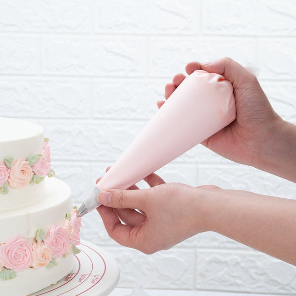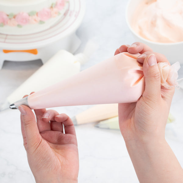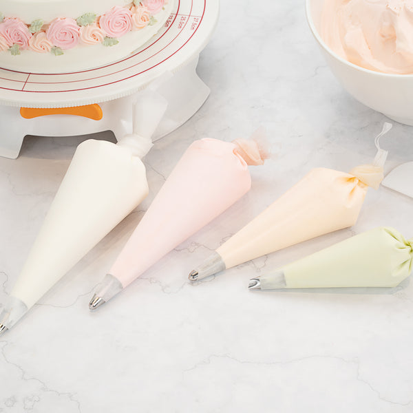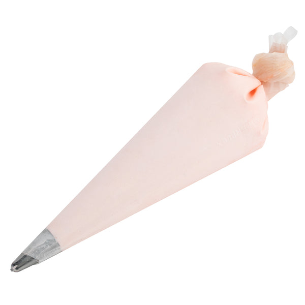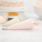 Frost unforgettable designs onto desserts using our Pastry Tek White Silicone Pastry Piping Bags. Crafted with high-quality silicone, these food grade piping bags let you decorate cakes in a safe and worry-free manner. The soft yet durable design of these pastry piping bags ensures that you can easily trim bags to fit your decorating needs. These lightweight bags for frosting provide a comfortable grip for ultimate precision while decorating or outlining pastries. The classic white finish of these piping bags is perfect for matching the rest of your cake decorating supplies. To conveniently reuse these pastry piping bags countless times, simply hand wash them after use. These bags for frosting measure 14 inches in length by 7.25 inches in width. Sold in a 2 count box.