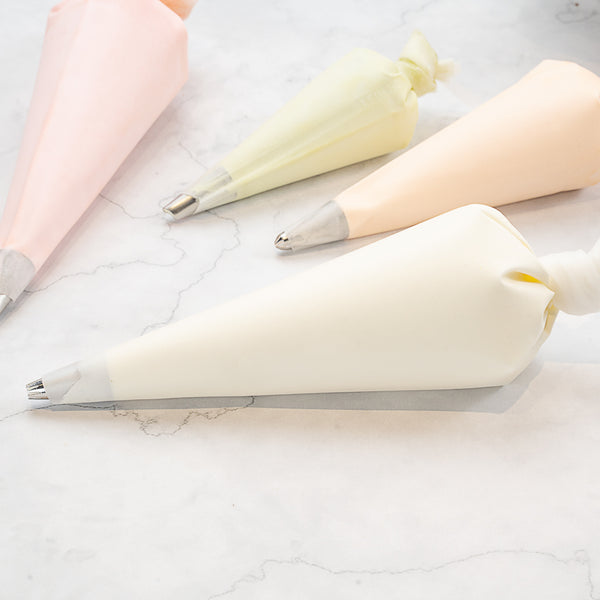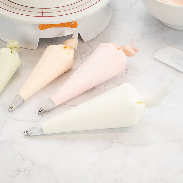 Design and decorate intricate desserts with ease using our Pastry Tek White Silicone Pastry Piping Bags. Perfect for everyday use, these pastry bags are made from premium silicone that is food grade so you can frost cakes without worry. These silicone piping bags are durable so you can trim bags to your desired size without the risk of tears or rips. Perfect for frosting cakes, these decorating bags are soft and lightweight so you can comfortably hold bags when creating precise details on desserts. These decorating bags feature a classic white finish that perfectly blends in with the rest of your baking tools. Ideal for easy cleanup, simply hand wash these pastry bags so you can reuse them countless times. These silicone piping bags measure 16 inches in length and 8.75 inches in width. Shipped in a 2 count box.