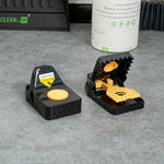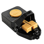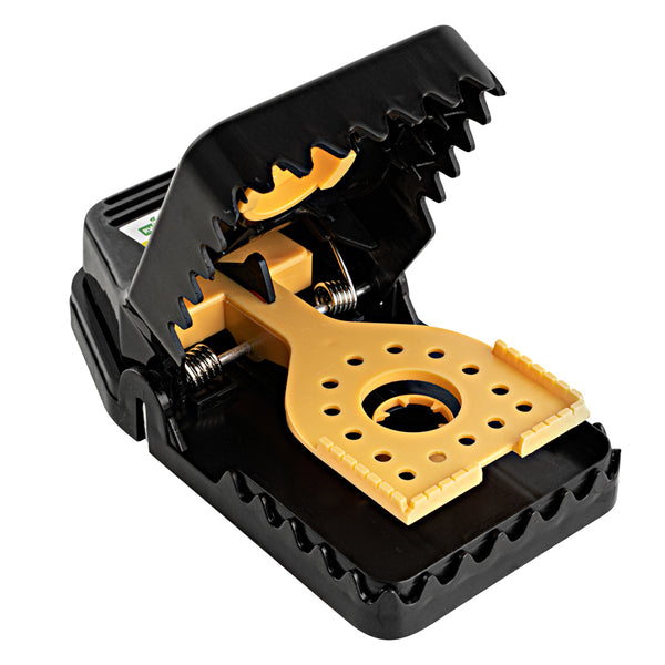 BLACK PLASTIC MOUSE TRAP - INTERLOCKING TEETH, BAIT CAP, REUSABLE
