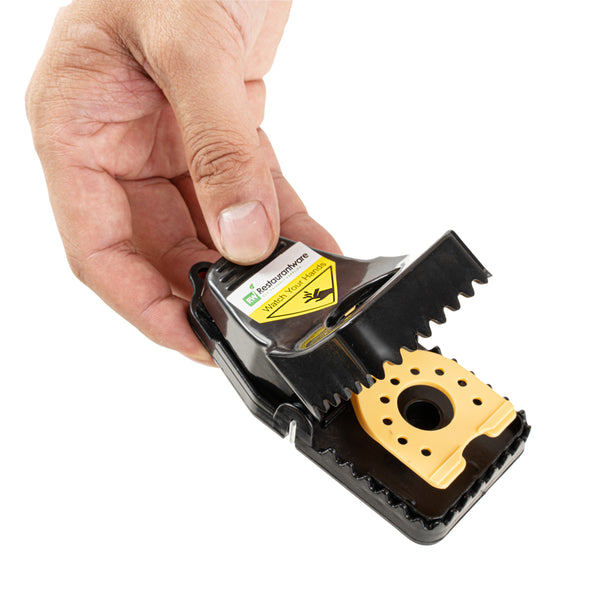These plastic rat traps come with removable bait cups or with removable bait caps, allowing you to fill them with any bait. Don't worry about hurting your fingers.