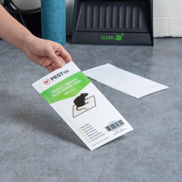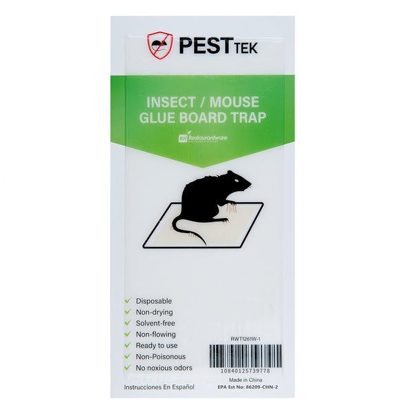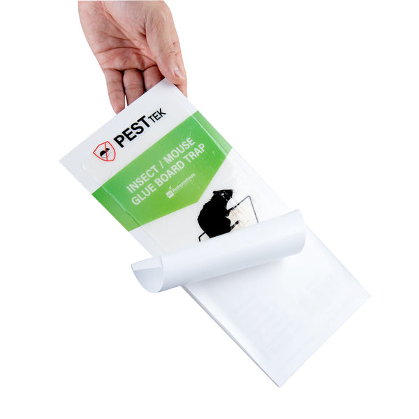 Our Pest Tek Paper Insect / Mouse Glue Board Traps provide a mess-free solution for pest control. These glue traps feature a powerful adhesive that is non-drying and non-flowing to securely capture pests. Disposable, these glue boards eliminate the need to handle trapped pests. Ready to be used right out of the box, these non-poisonous glue pads are pre-baited. These bond traps can be used flat, folded into a tunnel, or as a covered trap for versatile placement options. Producing no noxious orders, these sticky fly traps can be safely placed inside homes for a long time. Measuring 11 inches long by 5.25 inches wide, the large glue boards provide ample space to trap pests of all sizes. Each set contains 24 glue traps. Sold in a 10 count box.