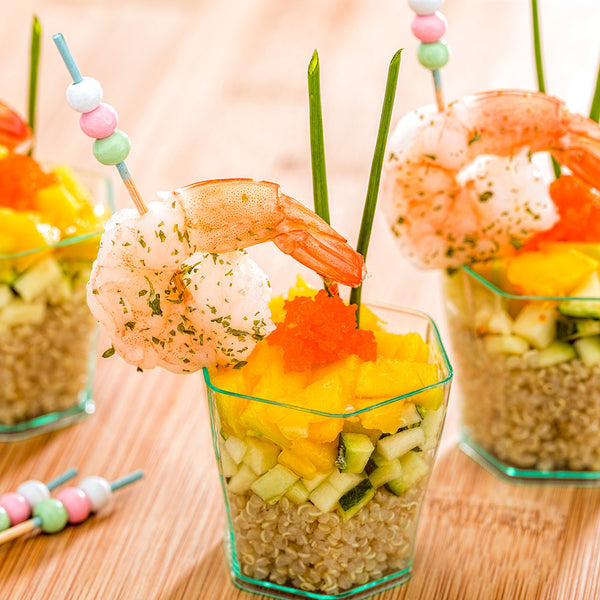 • Colorful bead accents enhance food presentation and cocktail garnishes