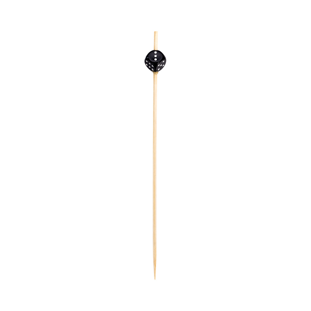 Add flair to your appetizers with our Pixy unique Black Bamboo Feeling Lucky Dice Skewers. These disposable appetizer skewers showcase a black and white dice decoration on top, adding a touch of visual interest to cocktail parties and buffet stations. Made from eco-friendly bamboo, these cocktail skewers provide a reliable strength that remains stable when loaded with various food items. These bamboo skewers feature a smooth, splinter-free design that ensures a comfortable eating experience without wood pieces getting in the way. These bamboo decorative picks are biodegradable and commercially compostable, ensuring an earth-friendly disposal option. The sharp tips of these party food toothpicks easily pierce through different food items, maintaining the structure of the ingredients. Measuring 4 inches in length by 0.5 inches in width by 0.5 inches in height, these dice skewers come in a 1,000 count box.