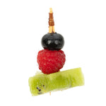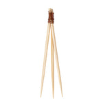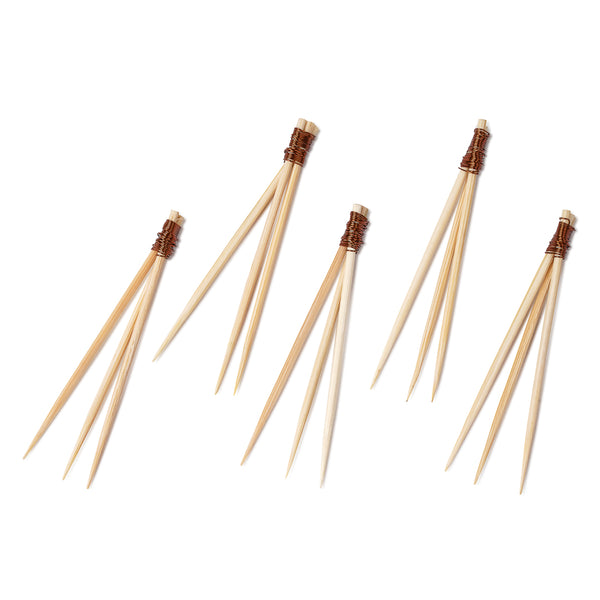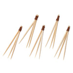 Add an unforgettable touch to hors d'oeuvres or bite-sized treats using our Pixy Natural Bamboo Brass Top Skewers. Artfully designed with a brass top, these veggie skewers instantly upgrade the look of food served at your foodservice establishment. Made from sustainable bamboo, these eco-friendly picks are naturally sturdy and feature a smooth surface to prevent splinters. Perfect for restaurants, hotels, or bars, these meat skewers have a sharp pointed end that easily pierces through all kinds of hot or cold foods. These break-resistant veggie skewers are conveniently disposable, providing customers with a simple way to clean up after enjoying their dishes. Each bamboo pick measures 2.5 inches in length and is perfect for finger foods or cocktail garnishes. Shipped in a 100 count box.