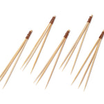 Elevate your food and drink presentations using our Pixy Natural Bamboo Copper Top Picks. Designed with a stylish copper top, these food skewers bring a shiny touch to cocktail garnishes, cheeses, or fruit spreads. These beef skewers have a sharp pointed end that easily pierces through all kinds of hot or cold foods. Made with premium sustainably sourced bamboo, these antipasto skewers are disposable so guests can easily clean up leftover skewers in an easy manner. Ideal for mess-free service, these food skewers have a smooth finish and are break-resistant to prevent them from splintering or snapping. These beef skewers measure 3.5 inches in length. Shipped in a 1000 count box.