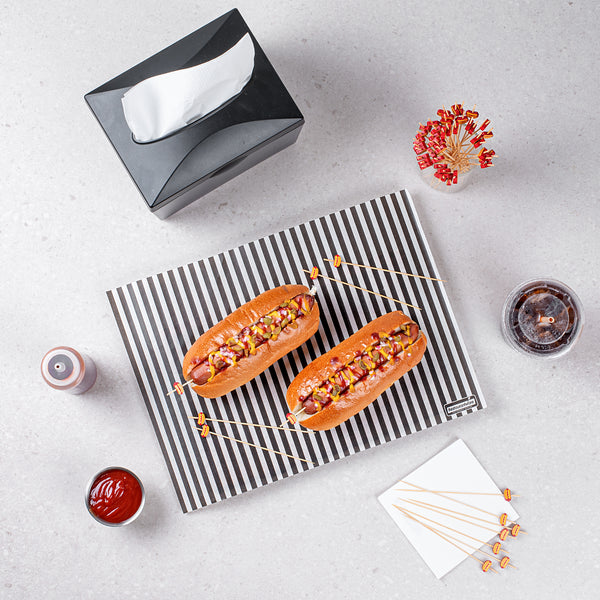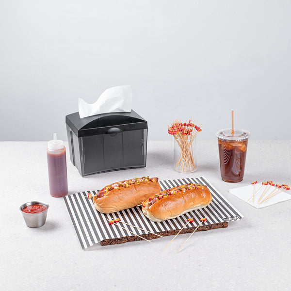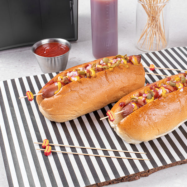 - Miniature hot dog accent creates a stylish look for entrees and appetizers