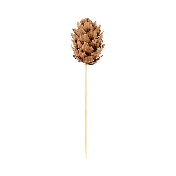 Transform your appetizers with the charming Natural Pixy Bamboo Mini Pine Cone Skewers. These cocktail skewers feature an attractive mini pine cone decoration, adding a rustic-inspired touch to your buffet displays and cocktail events. Made from eco-friendly bamboo, these disposable appetizer skewers deliver reliable strength, ensuring stability when holding a variety of food items. Each bamboo skewer boasts a smooth, splinter-free design for a pleasant and wood chip-free eating experience. These natural bamboo decorative picks are biodegradable and commercially compostable, providing a responsible disposal choice. These party food toothpicks have sharp tips that seamlessly pierce through diverse ingredients while maintaining their structure. Measuring 4 inches in length by 0.75 inches in width by 0.75 inches in height, these mini pine cone skewers are perfect for creating fall-inspired cocktail garnishes. Shipped in a 500 count box.