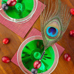 • Peacock feather adds bohemian flair to cocktail garnishes and tablescapes
