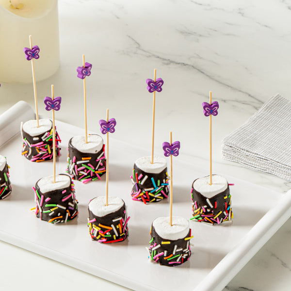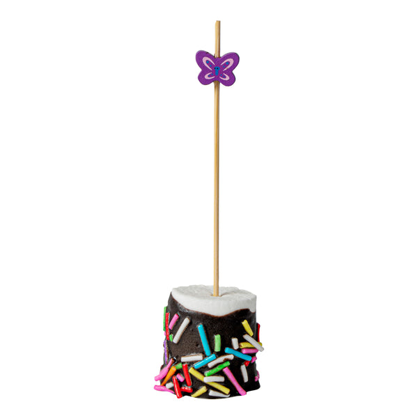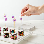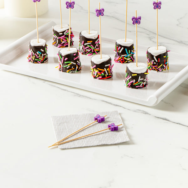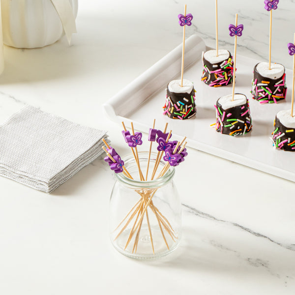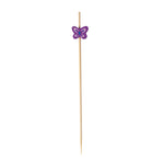 Enhance your presentation with eco-friendly flair and style. These Pixy Bamboo Splinter-Free Cocktail Picks provide a vibrant purple butterfly design that elevates the visual appeal of your appetizers and cocktail garnishes, making them ideal bamboo cocktail picks for any occasion. With a sharp end that easily pierces a variety of ingredients, these decorative cocktail skewers streamline the assembly of hors d'oeuvres, making prep time quicker and more efficient. Crafted from biodegradable bamboo, these picks offer a splinter-free surface, ensuring safe handling during service while demonstrating a commitment to sustainability. Measuring 4.7 inches in length, these cocktail garnish picks are perfect for effortlessly elevating your cocktails and snacks. Add a touch of elegance to your service and emphasize your dedication to eco-conscious choices with these picks. Each order includes 100 Pixy Bamboo Splinter-Free Cocktail Picks.