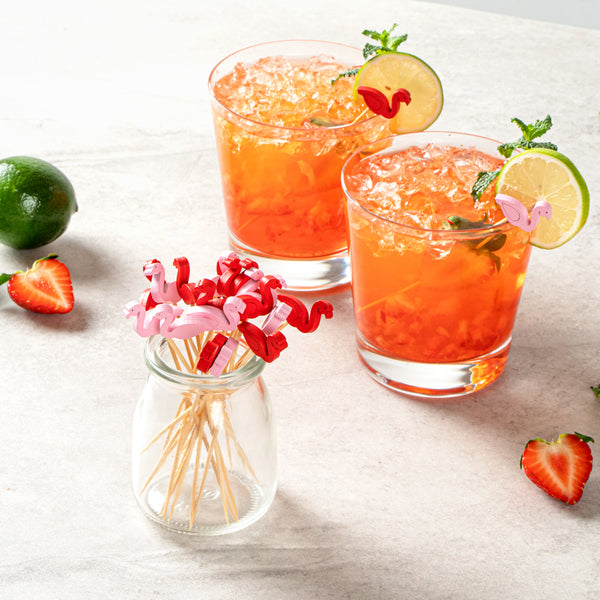 - Flamingo design adds tropical flair to cocktails and appetizers