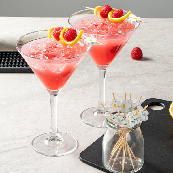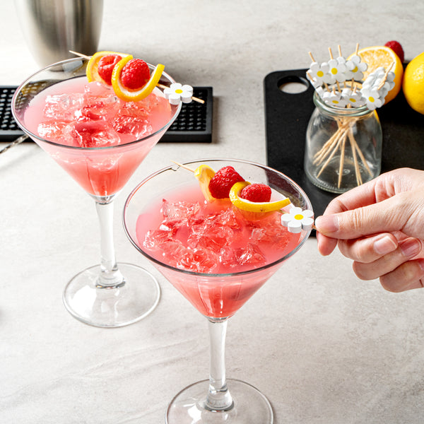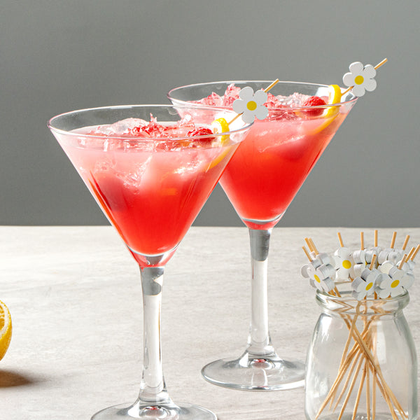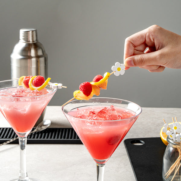 Enhance your presentation with eco-friendly drink garnish picks. The Pixy Bamboo Splinter-Free Cocktail Sticks feature a delightful daisy design that adds a cheerful touch to appetizers and cocktail garnishes. Crafted from biodegradable bamboo, these 4.7-inch picks are splinter-free, ensuring safe handling during busy service hours. Their sharp end easily pierces through tough ingredients like meats, making them ideal for catering and event settings. Use these wooden toothpicks as an effortless way to uplift your foodservice presentation while being conscious of sustainability. Impress guests and clients with eye-catching displays that combine functionality and style. Each order includes 100 Pixy Bamboo Splinter-Free Cocktail Sticks.