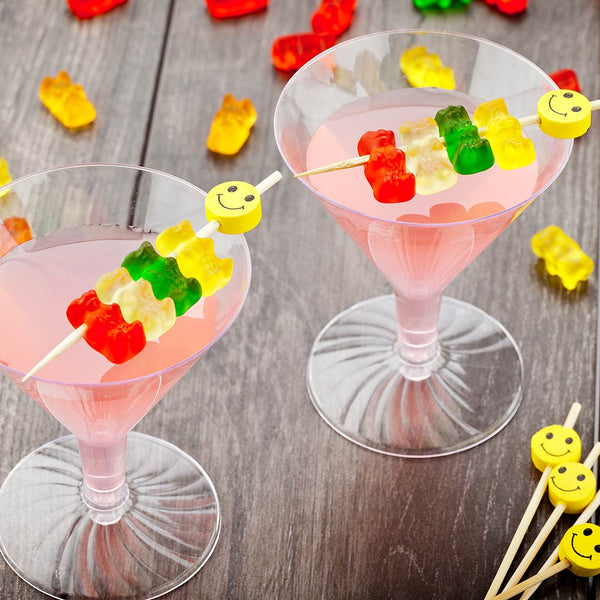 - Yellow smiley face brightens up the look of appetizers and cocktail garnishes