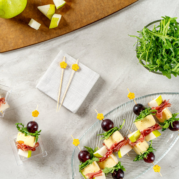 - Sharp end easily pierces through fruits, cheeses, and meats