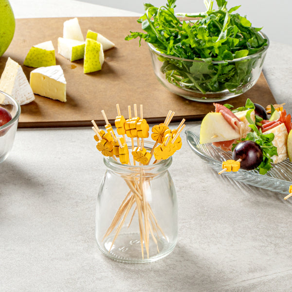 Enhance your culinary presentations with precision and style. The Restaurantware Pixy Bamboo Splinter-Free Toothpicks feature a sharp end that effortlessly pierces through ingredients, streamlining food assembly and ensuring efficient service. Crafted from yellow bamboo, these toothpicks provide the eco-friendly benefit of being biodegradable, making them an excellent choice for sustainable dining environments. Their flower design adds a touch of elegance to appetizers and cocktail garnishes, setting them apart as eye-catching party picks. With a splinter-free surface, these wooden cocktail picks offer safe handling, essential for busy catering events and bar services. Measuring 4.7 inches in length, they are perfectly suited for both cold and hot food applications, accommodating diverse menu items with ease. Elevate your guest experience with these reliable bamboo toothpicks that combine functionality with a sophisticated aesthetic. Sold in a 1000 count box.
