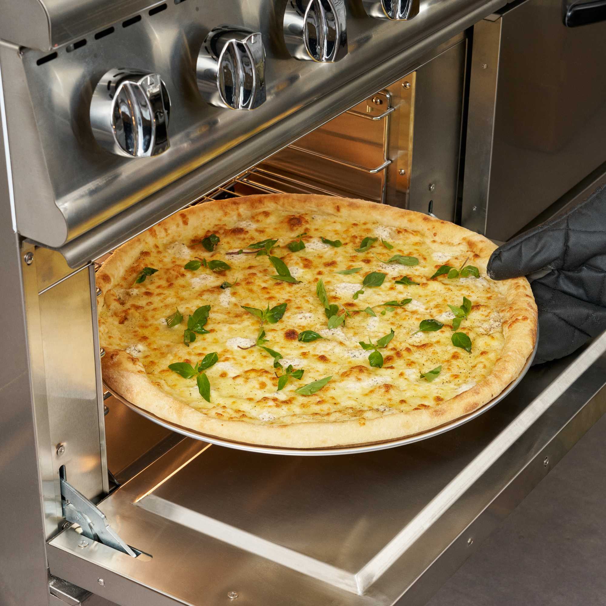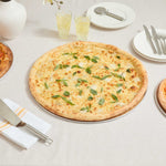 - Wide rim prevents spills during pizza serving and handling