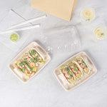Keep your tacos fresh and visually appealing with our see-through taco tray solution. The Pulp Safe Clear Dome Lid provides a perfect fit for taco trays, ensuring taco visibility and maintaining freshness with its clear dome lid. Crafted from recyclable plastic, this lid offers foodservice professionals a sustainable choice that complements any eco-friendly initiative. Measuring 9.2 inches by 6.7 inches by 1.7 inches, this plastic taco lid is designed to be greaseproof, maintaining cleanliness and reducing mess during service. Additionally, its freezer-safe feature allows you to prep ingredients in advance, enhancing operational efficiency. Whether you're storing ingredients in the refrigerator or showcasing them under a heat lamp, this lid is tailored for both hot and cold food applications. Choose this taco tray cover to enhance your food presentation and service efficiency. Each order includes 100 Pulp Safe Clear Dome Lids.
