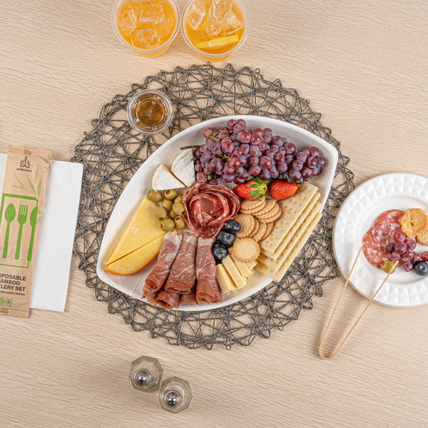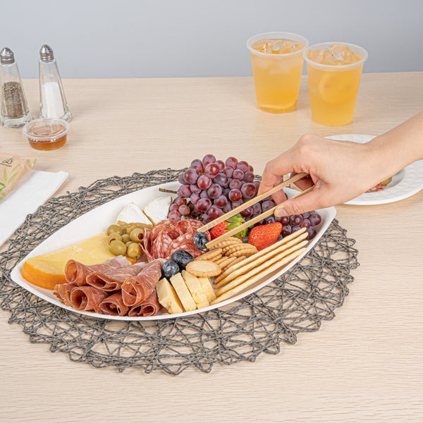 • Natural sugarcane fibers provide an eco-friendly way to serve hot or cold dishes