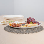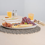 Present your food in an eco-friendly, stylish manner with our Pulp Safe Modular No PFAS Added White Sugarcane / Bagasse Trays. These home compostable white food trays contain no added PFAS, ensuring a dependable and enjoyable mealtime. BPI Certified for commercial composting, these food trays provide foodservice operators with a sustainable way to dispose of them after use. Crafted from durable bagasse material, these dinner trays hold up to heavy, saucy meals without bending or breaking. Showcasing an elegant white finish, these home compostable food trays add a touch of sophistication to any meal service. Perfect for all kinds of foods, these sugarcane trays are a versatile addition to your catering or restaurant supplies. Designed to withstand microwave heat, these white dinner trays are ideal for quickly reheating meals. Measuring 14 inches in length by 9.25 inches in width by 1.5 inches in height, these durable trays have ample space for a full meal. Sold in a 100 count box. This item will only degrade outside of the traditional solid waste stream.