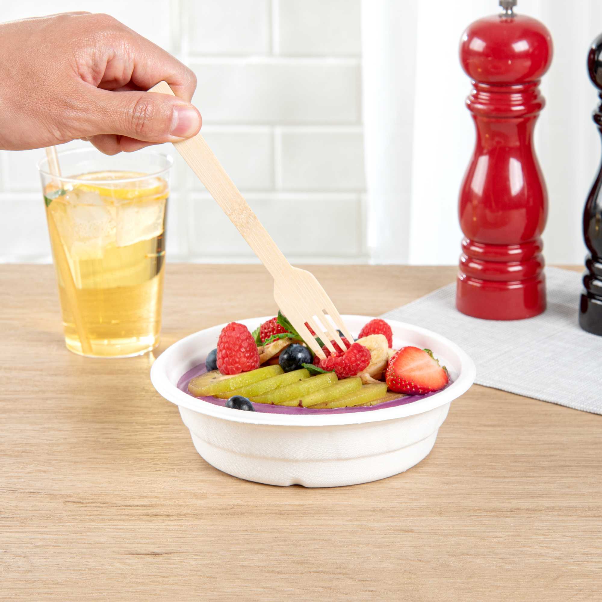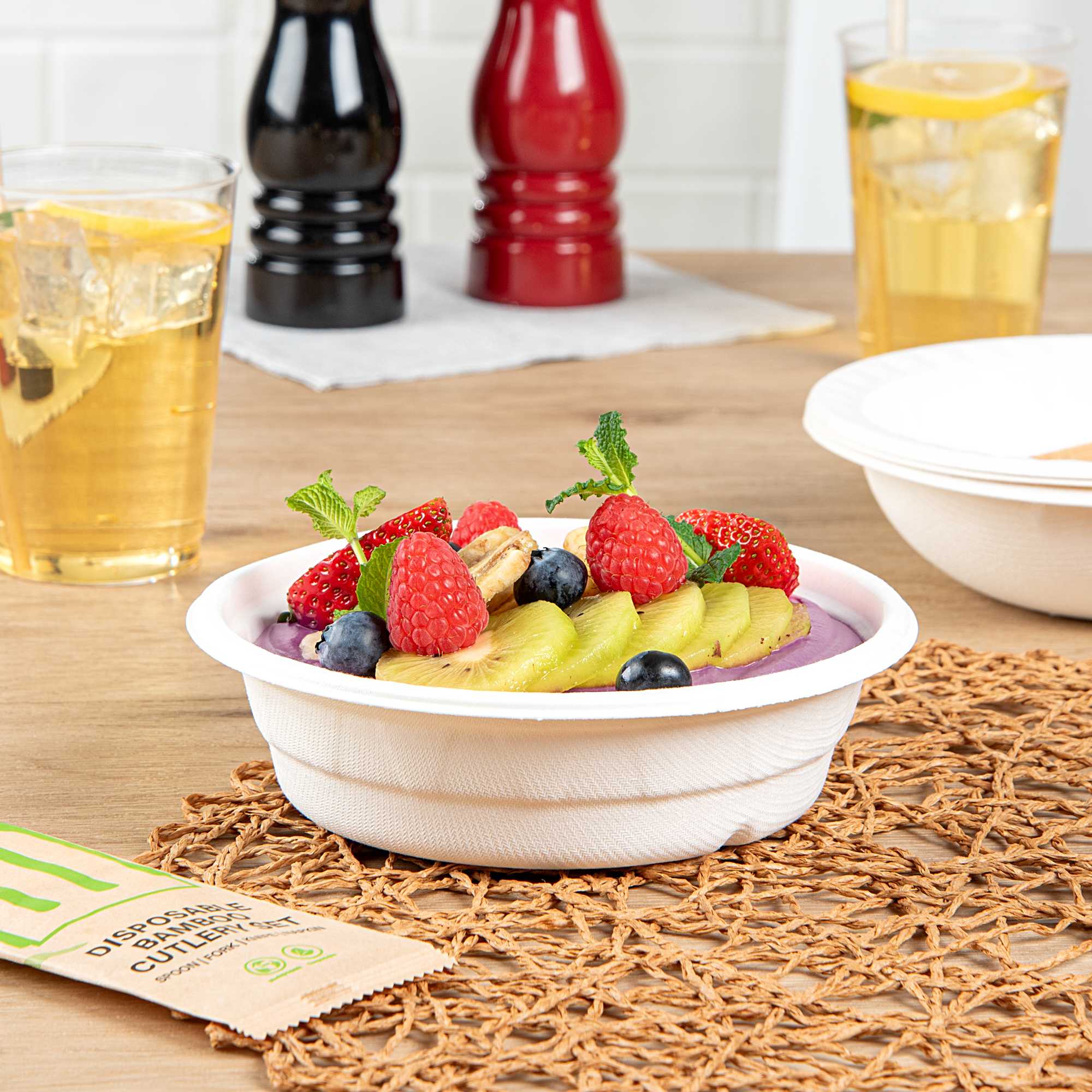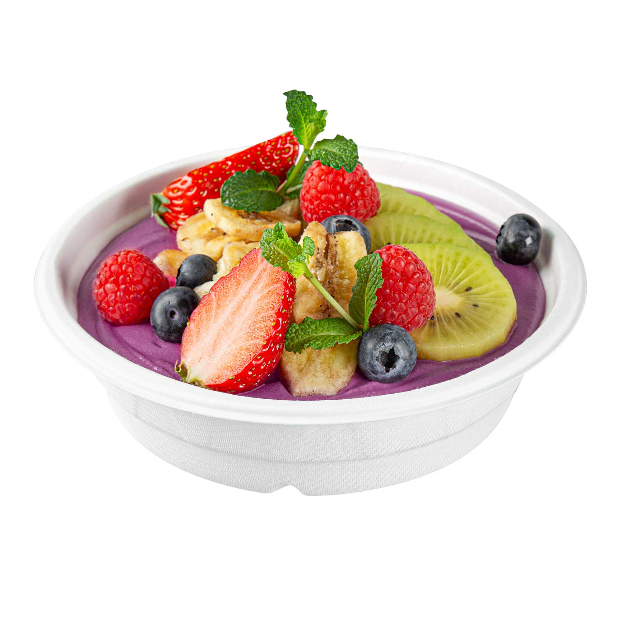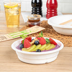 Elevate your food presentation with eco-friendly serving solutions. The Pulp Safe Round Bagasse Bowl combines sustainability and style, featuring a classic bright white color that enhances the look of appetizers and snacks. Made from bagasse, this sugarcane bowl is compostable, supporting environmentally conscious foodservice operations. Its robust construction ensures that it won't break or crack under moderate pressure, making it ideal for containing messy foods. The elegant diamond pattern offers a subtle textured look, adding a refined touch to your plating. This microwave-friendly bowl accommodates both hot and cold dishes effortlessly, allowing for versatile menu options from soups to salads. With dimensions of 6.30 inches in diameter by 1.72 inches in height, this freezer-friendly bowl is perfect for a variety of settings, including restaurants and catering events. Sold in a 100 count box.