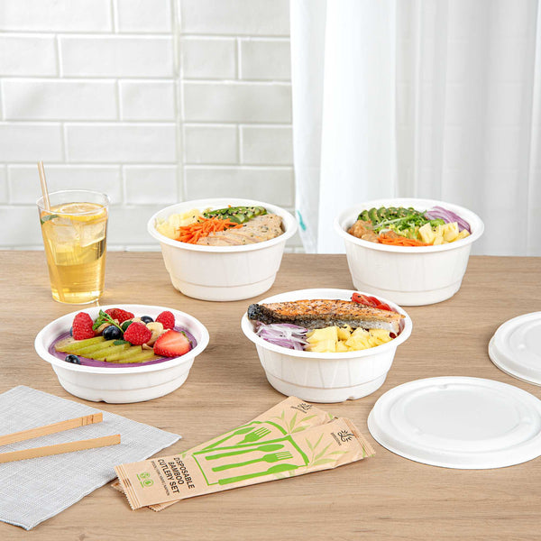 NO PFAS ADDED 17 OZ ROUND WHITE BAGASSE BOWL - DIAMOND PATTERN