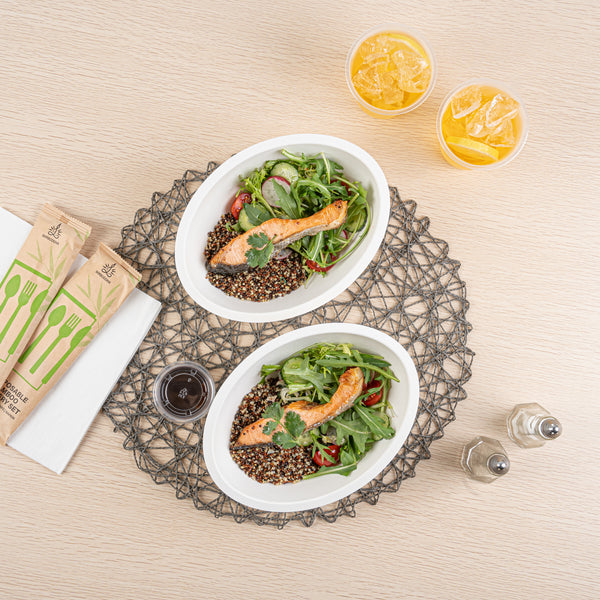 - Natural sugarcane fibers provide an eco-friendly way to serve hot or cold dishes