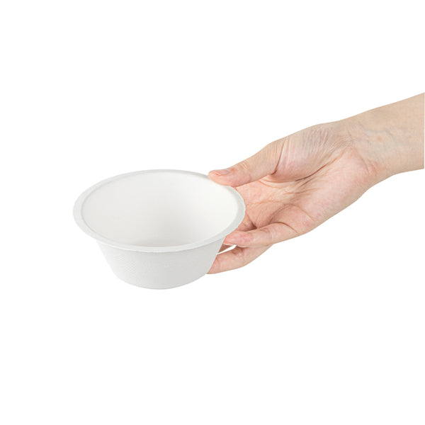 Provide your customers with grab-and-go salads using our Pulp Safe No PFAS Added 8-ounce Round White Sugarcane / Bagasse Salad Bowls. Crafted in strict compliance with state regulations, these bagasse bowls have been formulated without any added PFAS. The high-quality bagasse construction of these eco-friendly salad containers makes them sturdy to hold foods without breaking or tearing. Dispose of these disposable salad bowls as they are home compostable and biodegradable. These 8-ounce bowls are freezable to let you refrigerate leftovers. With a hot and cold friendly design, these appetizer bowls let you serve all types of salads and snacks. The extended rims of these bagasse bowls keep messes at bay by avoiding spills and making it easy to hold them. Pair these no PFAS added bagasse round bowls with our compatible plastic dome lids (SKU: RWA0616C) to be always take out ready. Featuring a white finish, these pulp bowls elevate your food presentation. Measuring 4.5 inches in diameter by 1.75 inches in height, these sugarcane bowls have a capacity of 8 ounces. Shipped in a 100 count box. This item will only degrade outside of the traditional solid waste stream.