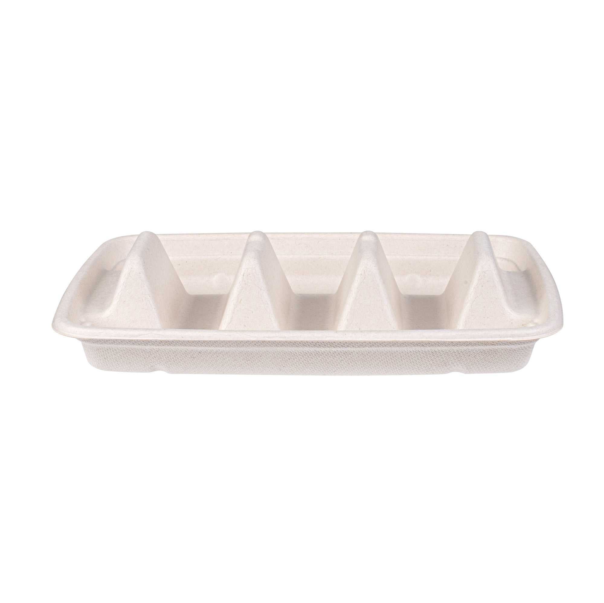 NO PFAS ADDED NATURAL SUGARCANE / BAGASSE TACO HOLDER TRAY- 3 DIVIDERS