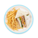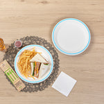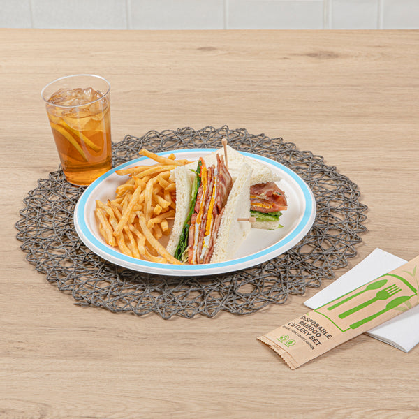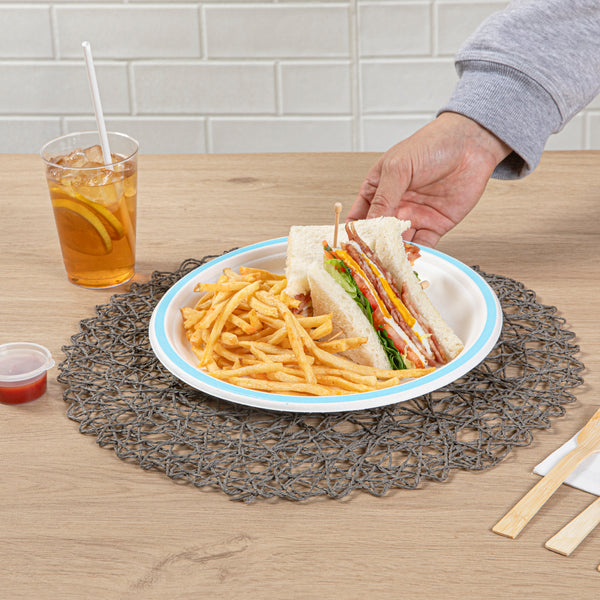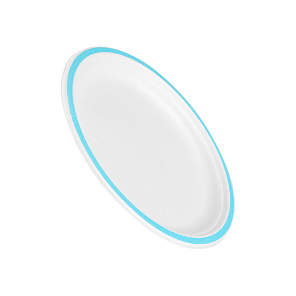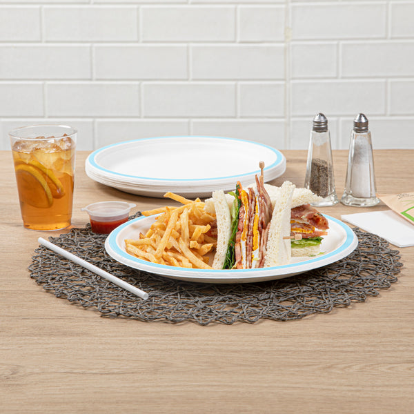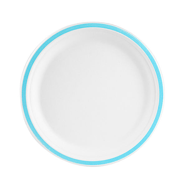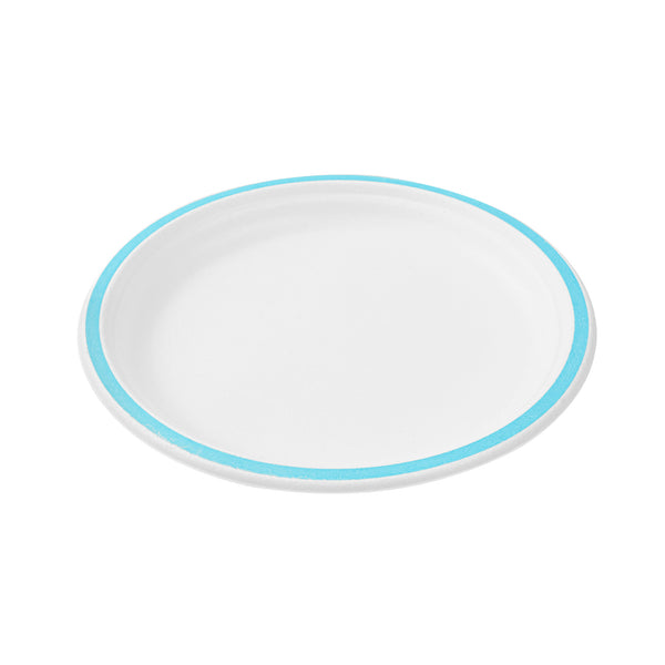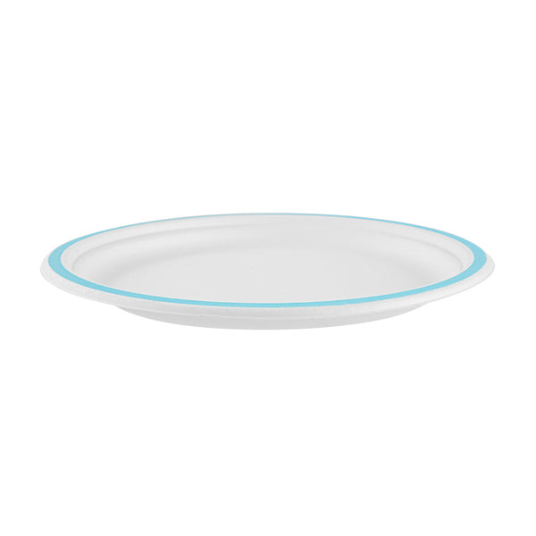 NO PFAS ADDED SUGARCANE / BAGASSE PLATE - HOME COMPOSTABLE, BLUE RIM