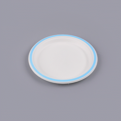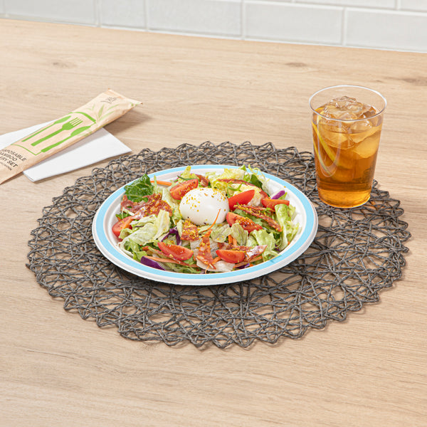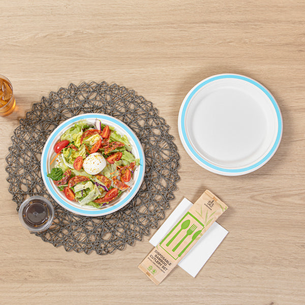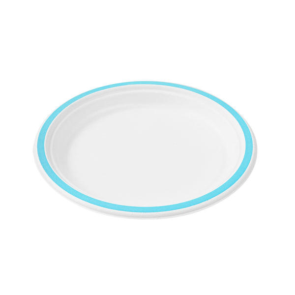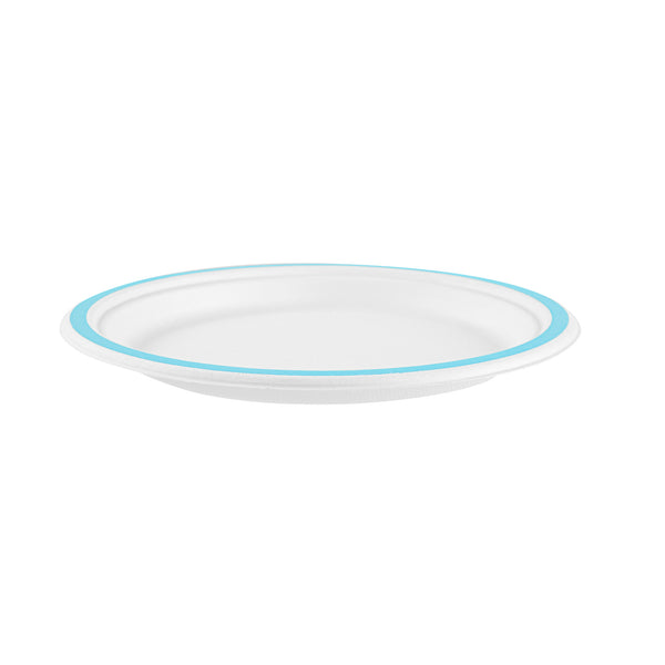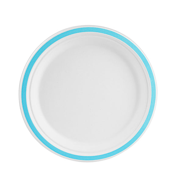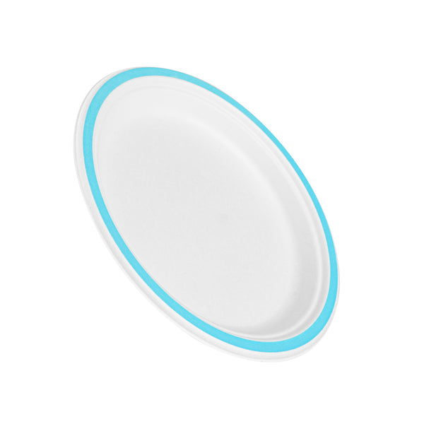 NO PFAS ADDED SUGARCANE / BAGASSE PLATE - HOME COMPOSTABLE, BLUE RIM