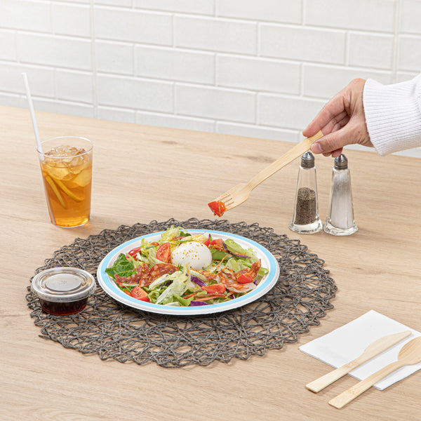 Enhance your sustainability efforts with eco-friendly tableware. Pulp Safe Compostable Dinner Plates offer an innovative design crafted from sugarcane bagasse, providing a robust and environmentally conscious alternative to traditional plastic options. These bagasse plates are free of PFAS, ensuring a safer dining experience by eliminating harmful chemicals, which is essential for health-conscious eateries. The microwave-safe plates facilitate seamless service of hot foods, while their compostable construction supports eco-friendly operations, perfect for restaurants committed to reducing their environmental impact. With a freezer-safe quality, these plates maintain food freshness for storage, making them versatile for various catering needs. Measuring 8.8 inches in diameter, these plates also feature a stylish blue rim to elevate the presentation of any dish. Choose these plates to align with sustainability goals and enhance your offerings with compostable dinner plates. Each order includes 100 Pulp Safe Compostable Dinner Plates.
