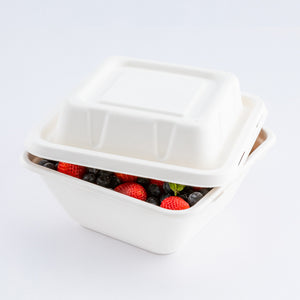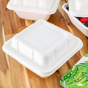 Made from sugarcane fibers, also known as bagasse, these containers are sustainable. Choose from a natural brown finish or a sleek white finish to complement your to-go orders.