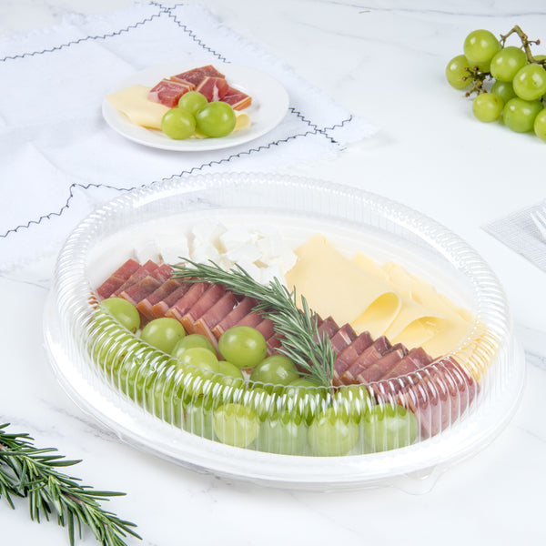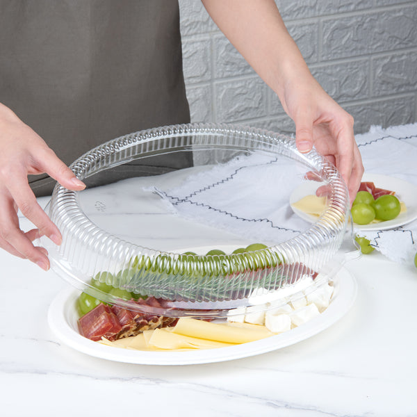 OVAL PLASTIC RIPPLE DOME LID - FITS SUGARCANE / BAGASSE LARGE PLATE