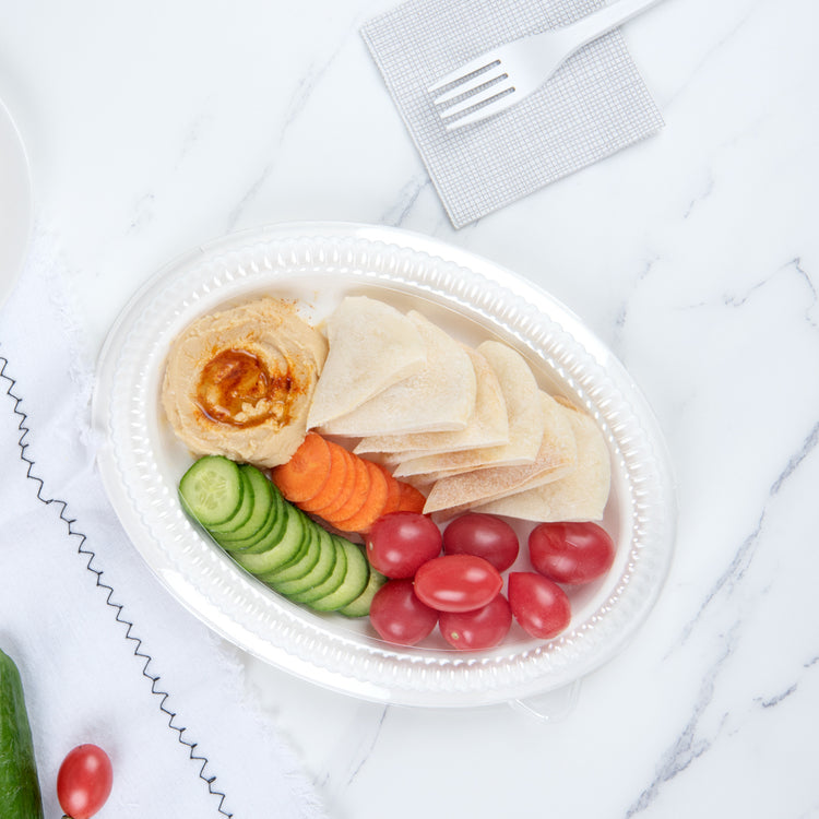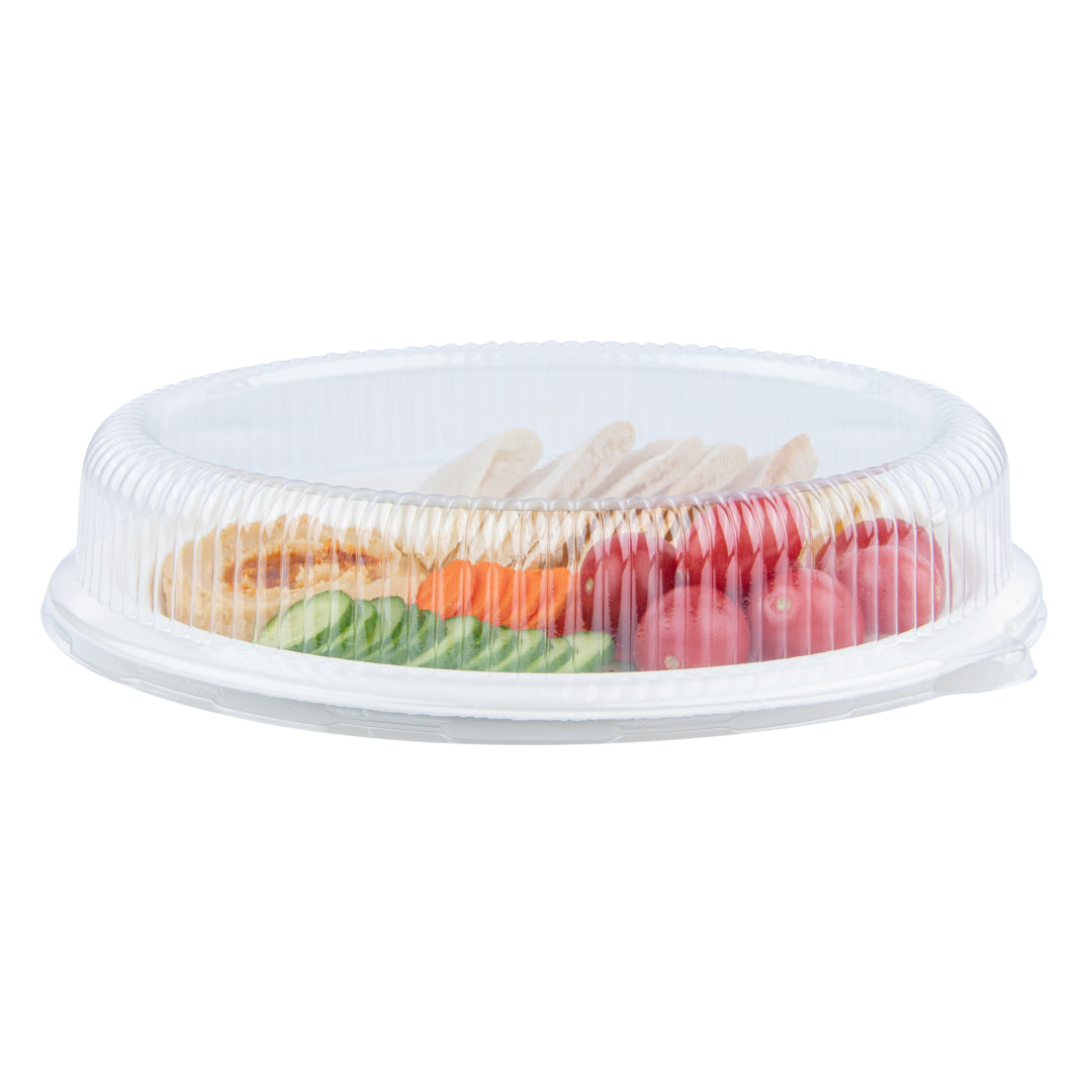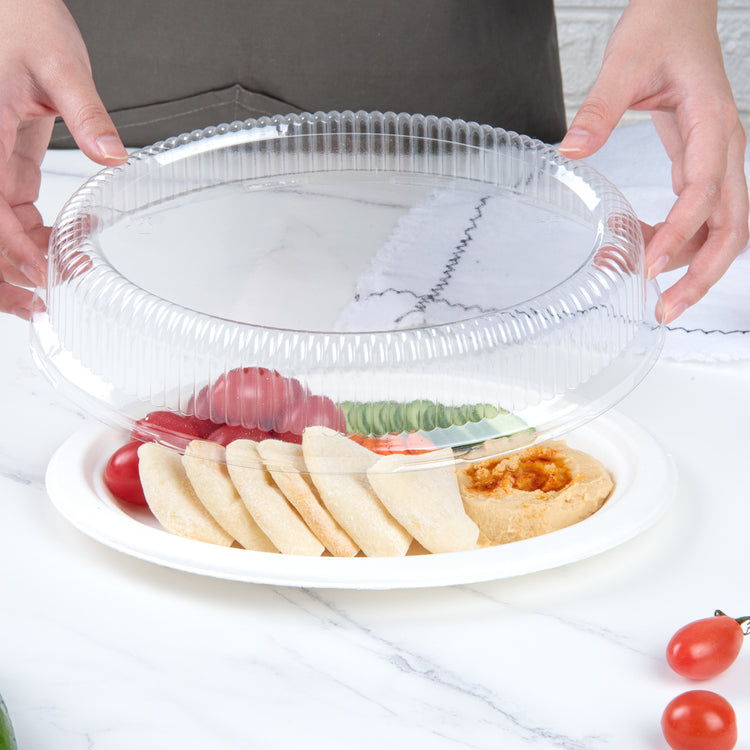 OVAL CLEAR PLASTIC RIPPLE DOME LID - FITS SUGARCANE / BAGASSE PLATE