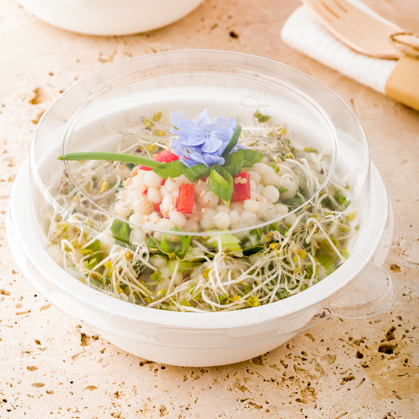 Both our bagasse and PET plastic lids are conveniently disposable for quick cleanup after use. These lids make it easy to protect the earth from unnecessary waste.