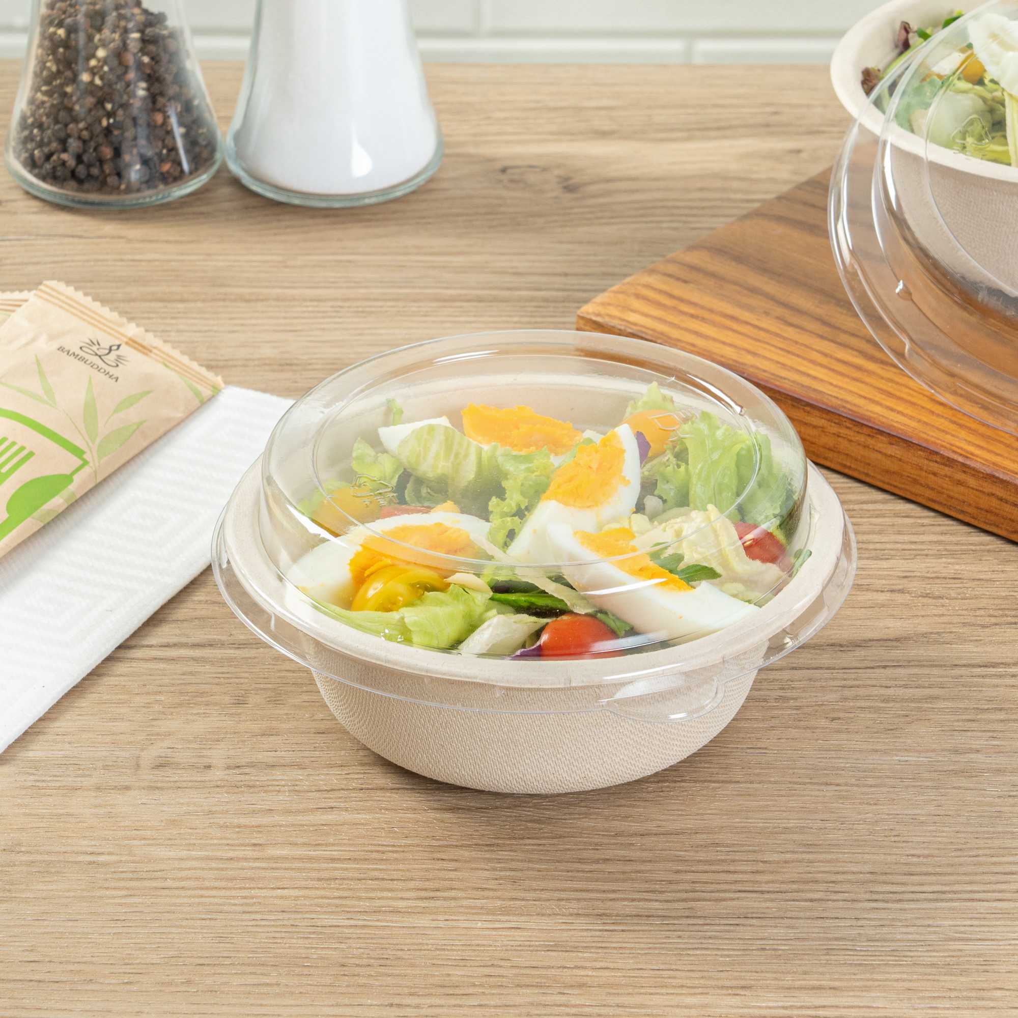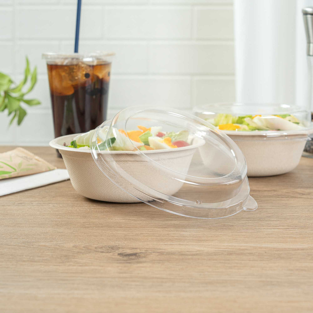 ROUND CLEAR PLASTIC DOME LID - FITS 18 OZ BAGASSE SALAD BOWL