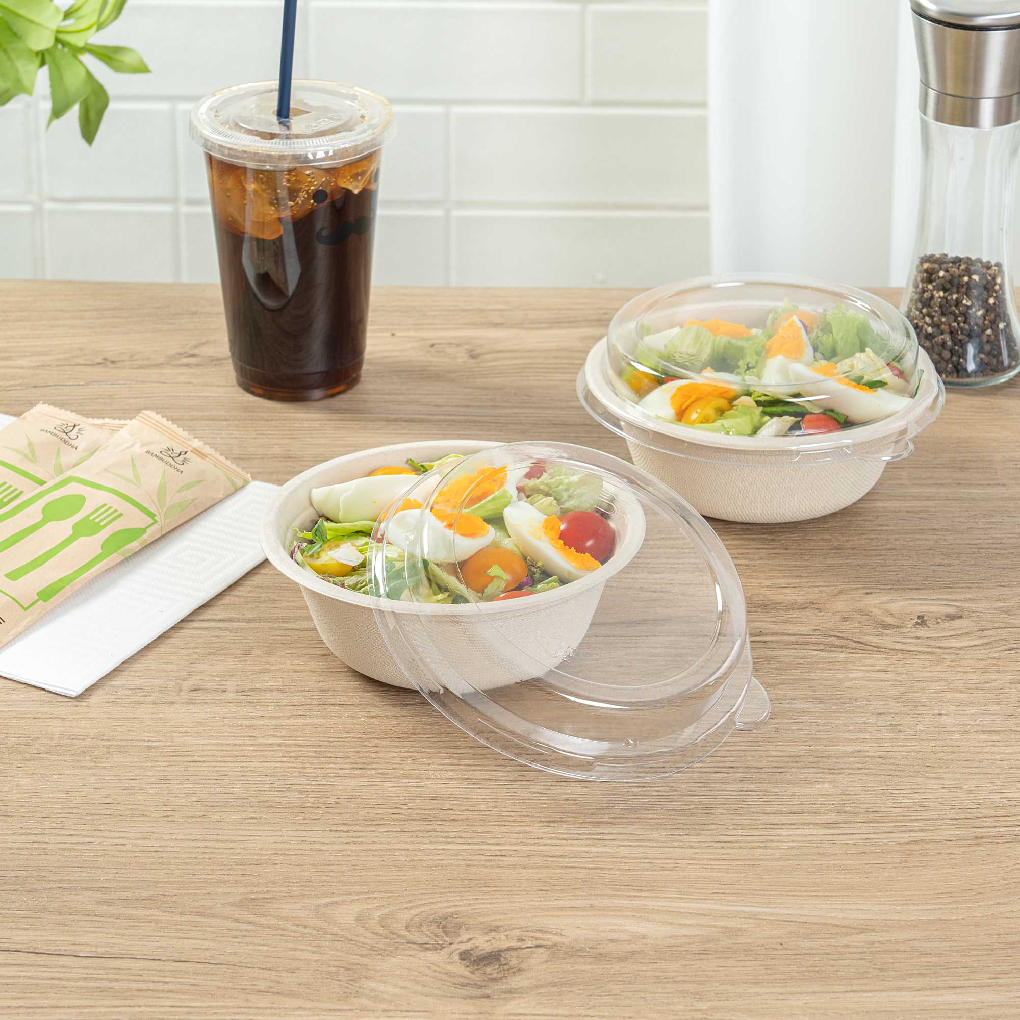 Both our bagasse and PET plastic lids are conveniently disposable for quick cleanup after use. These lids make it easy to protect the earth from unnecessary waste.