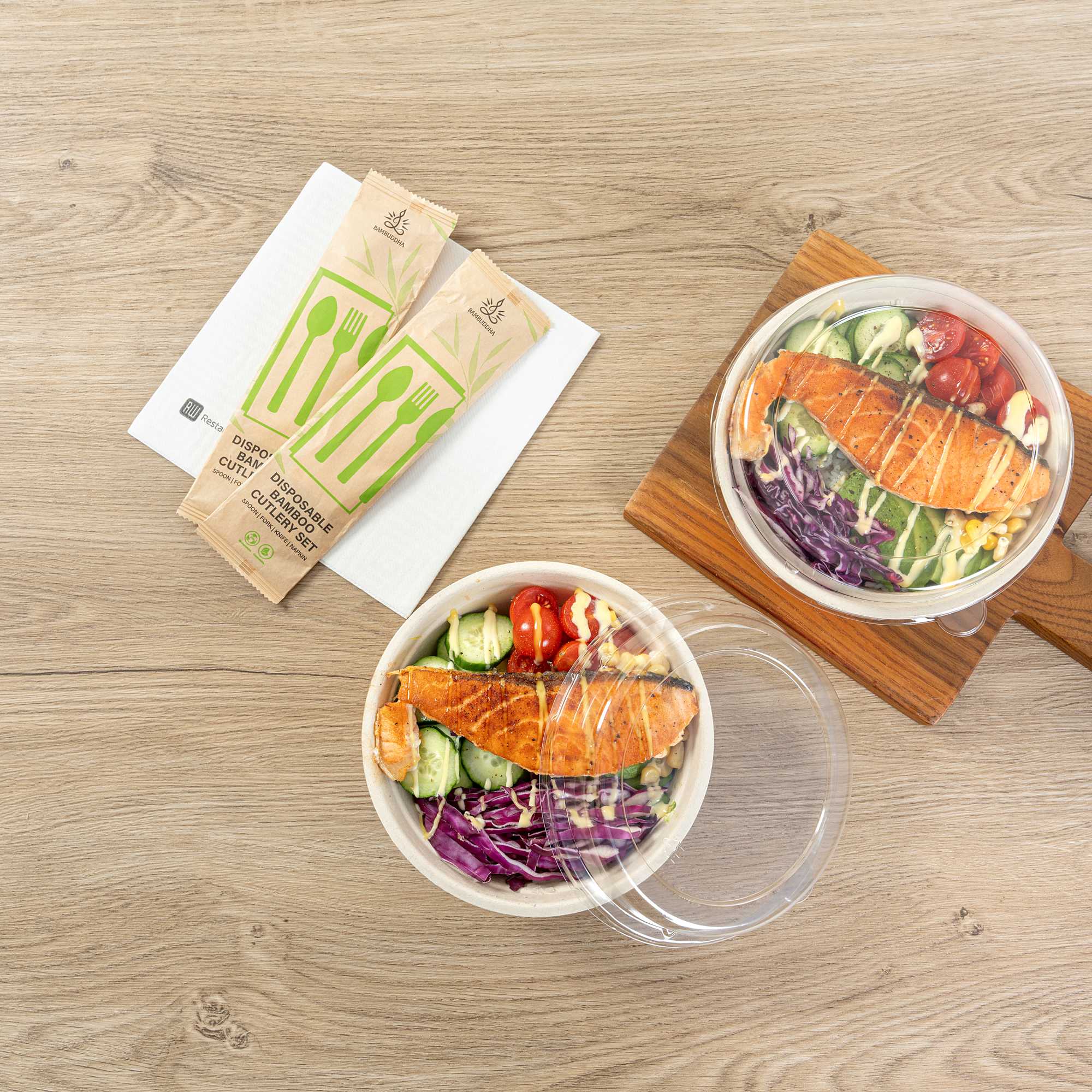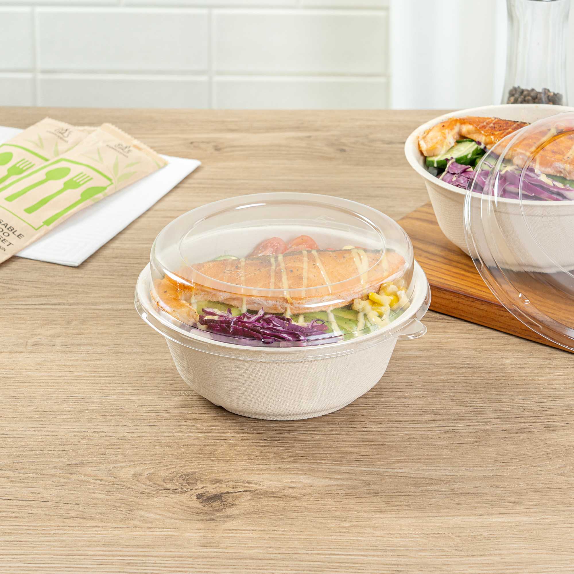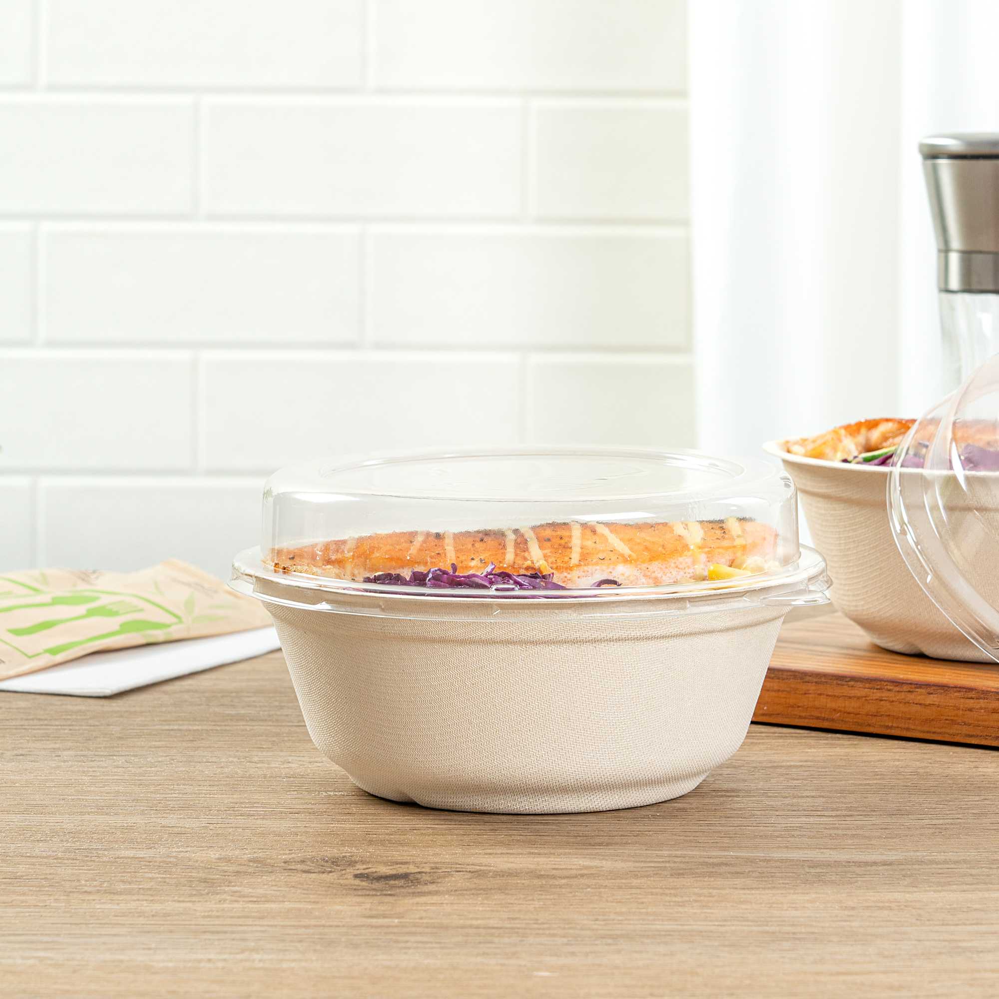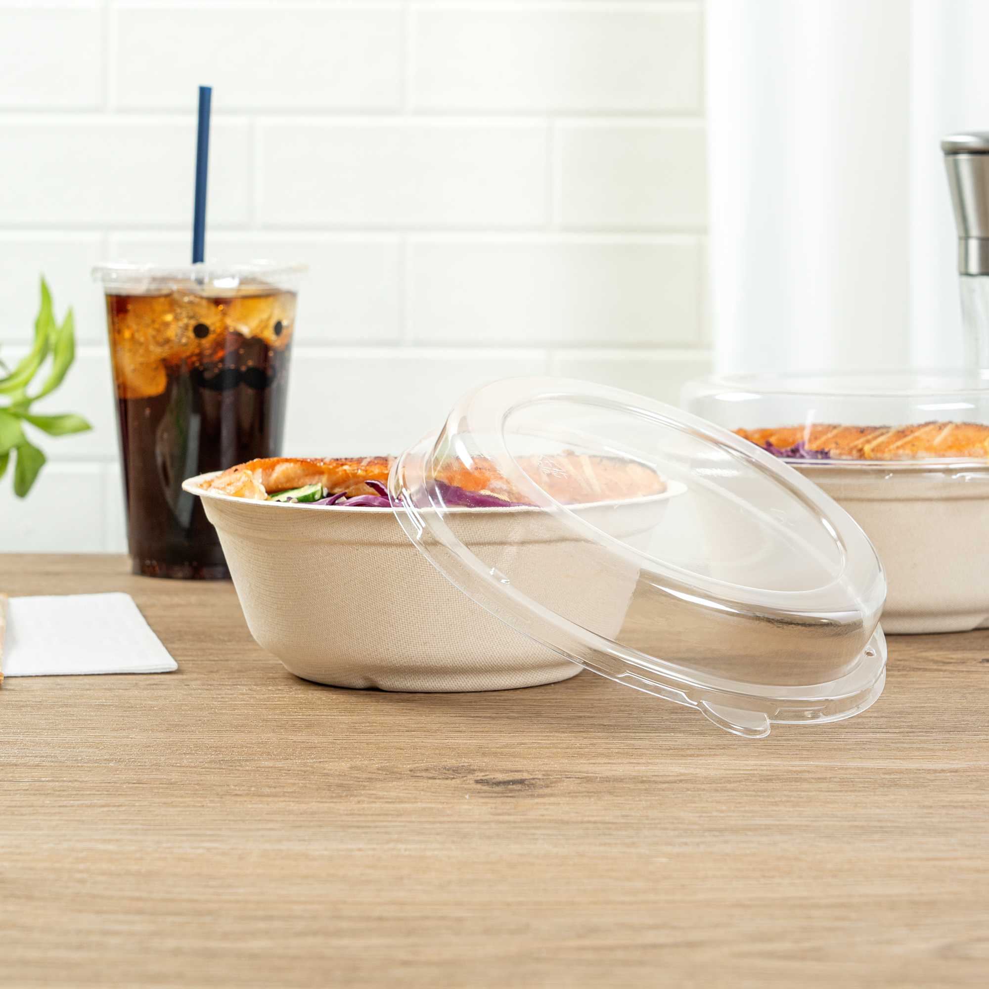 Both our bagasse and PET plastic lids are conveniently disposable for quick cleanup after use. These lids make it easy to protect the earth from unnecessary waste.