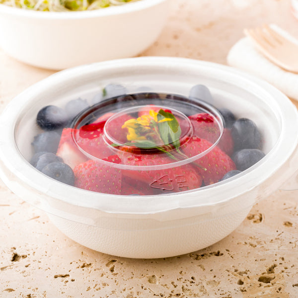 Both our bagasse and PET plastic lids are conveniently disposable for quick cleanup after use. These lids make it easy to protect the earth from unnecessary waste.