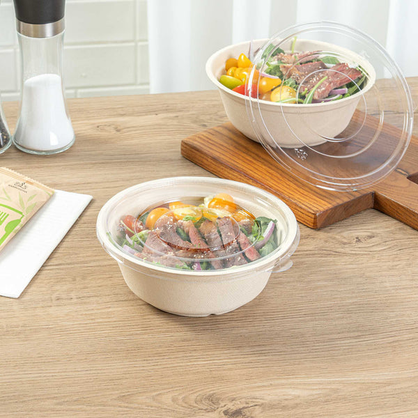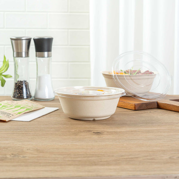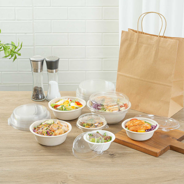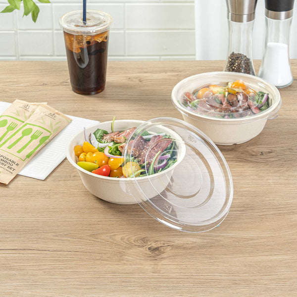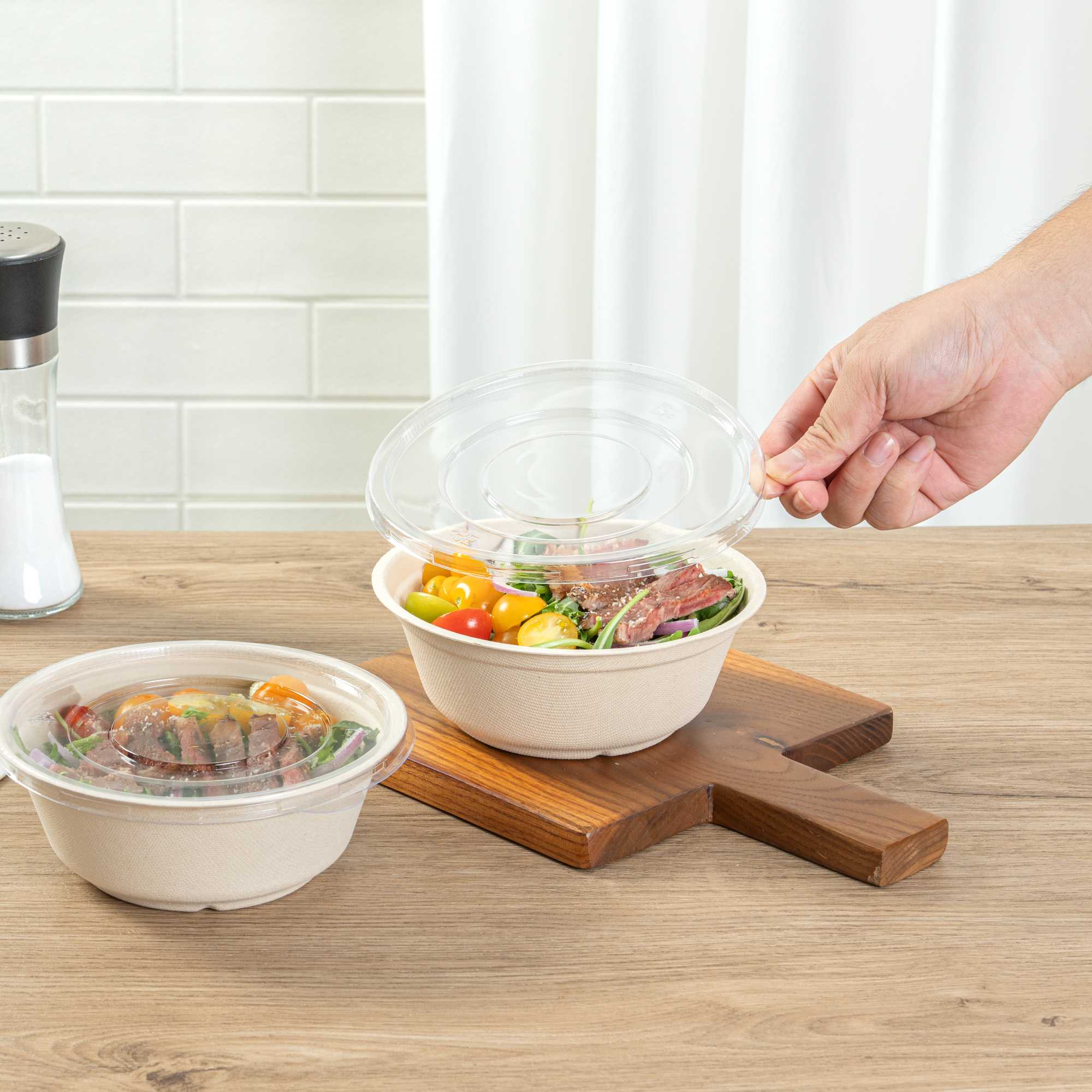 Both our bagasse and PET plastic lids are conveniently disposable for quick cleanup after use. These lids make it easy to protect the earth from unnecessary waste.