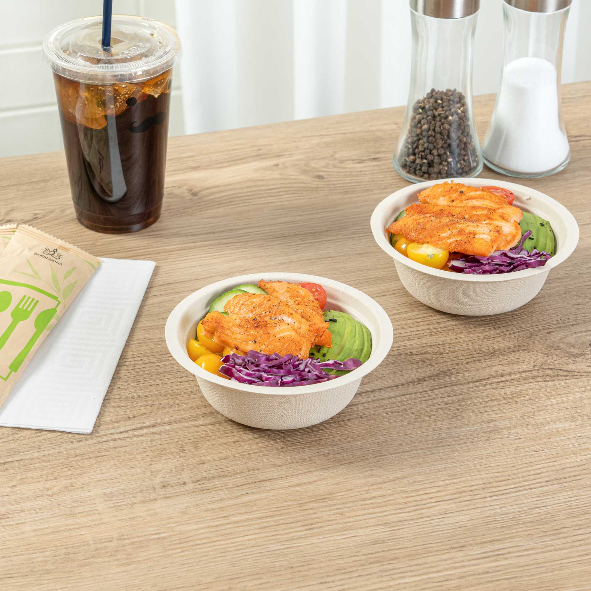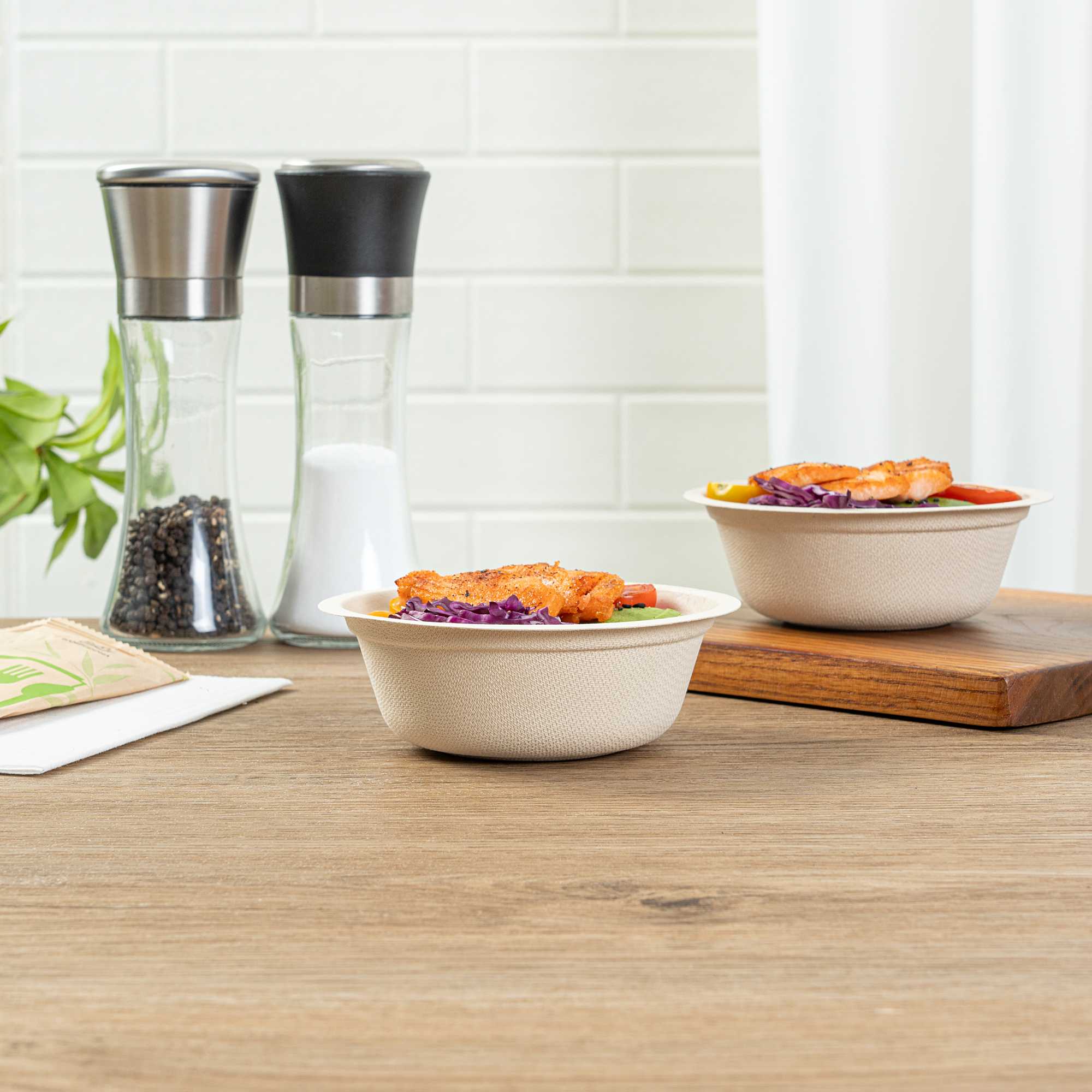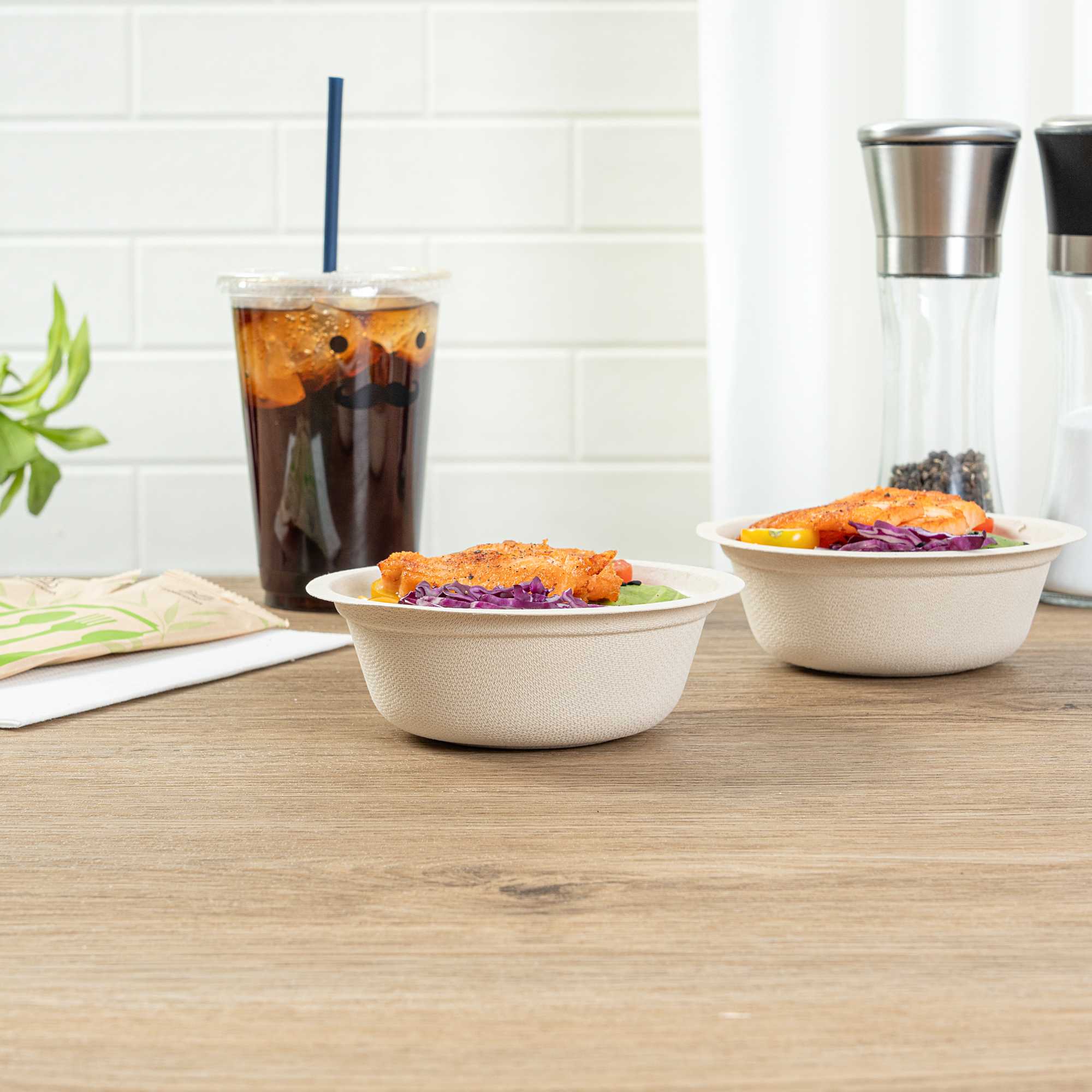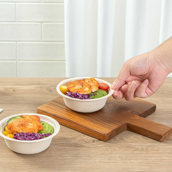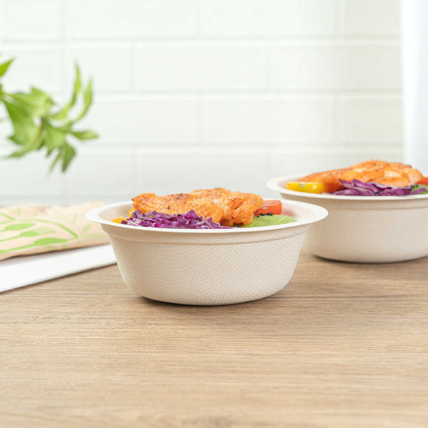 - Sustainable bagasse provides alternative to traditional plastic or styrofoam bowls