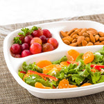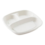15 OZ SQUARE WHITE SUGARCANE / BAGASSE SALAD PLATE - 3 COMPARTMENTS