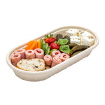 Pack up fresh chicken tacos, salads, and sandwiches using our Pulp Tek 17-ounce Oval Natural Sugarcane/Bagasse Take Out Containers. A great alternative to foam tableware, these carry out boxes are commercially compostable and biodegradable to sustainably dispose of foods. These catering food containers are made to securely hold meals without the risk of bending or breaking. Designed with an unbleached finish, these biodegradable to go containers naturally complement the look of your eco-friendly take out supplies. Perfect for safely taking meals on the go, pair these bagasse take out containers with our matching oval bagasse lids (SKU: RWA0770K). To easily prevent messes and stains when filled with hefty foods, these disposable food boxes are leak-resistant and grease-resistant. These oval food containers are freezer-safe and microwave-safe, providing a convenient way for customers to store and reheat their leftovers. Each bagasse catering box has a capacity of 17 ounces and measures 9.5 inches long by 4.75 inches wide by 1.25 inches tall. Shipped in a 100 count box. Lids are available and sold separately.