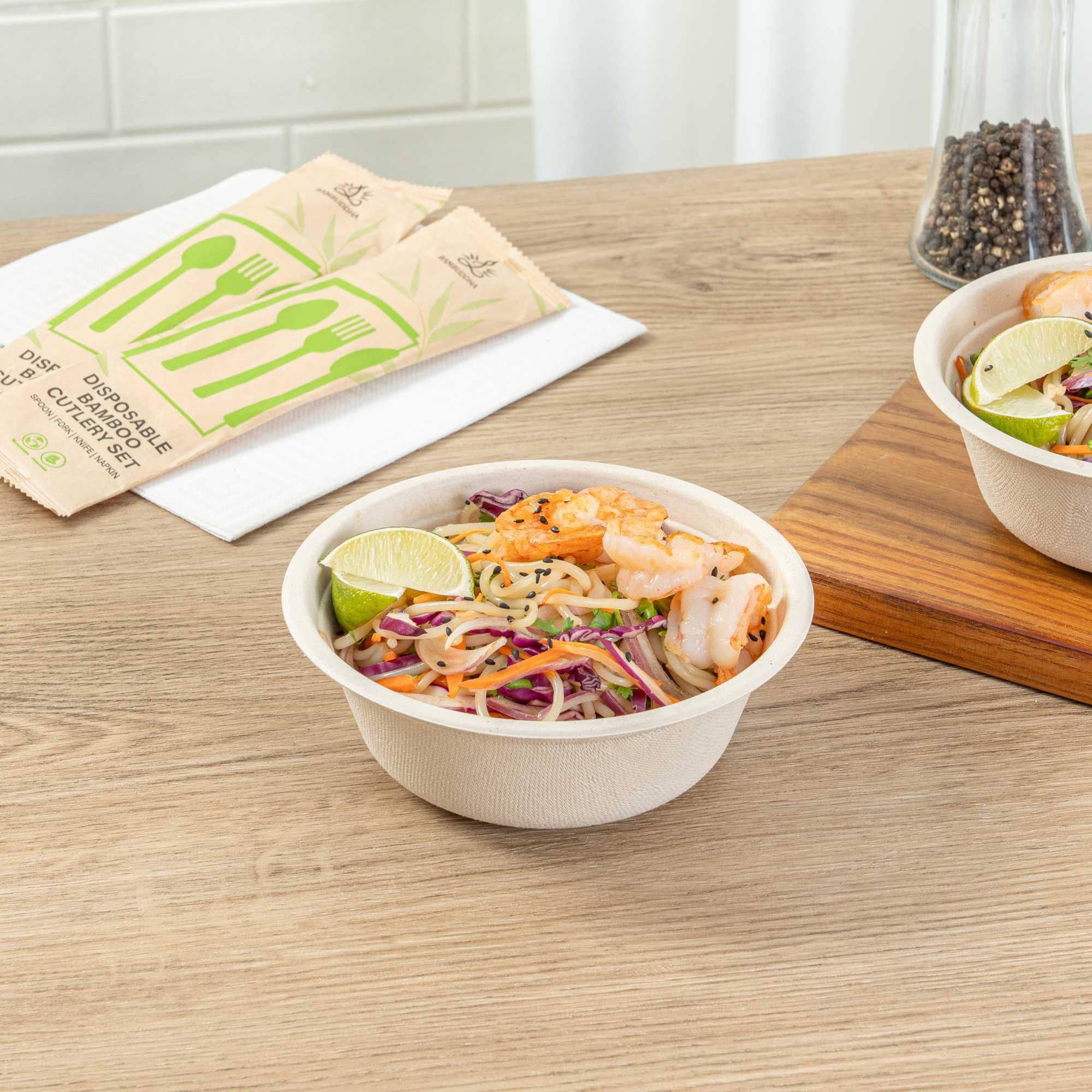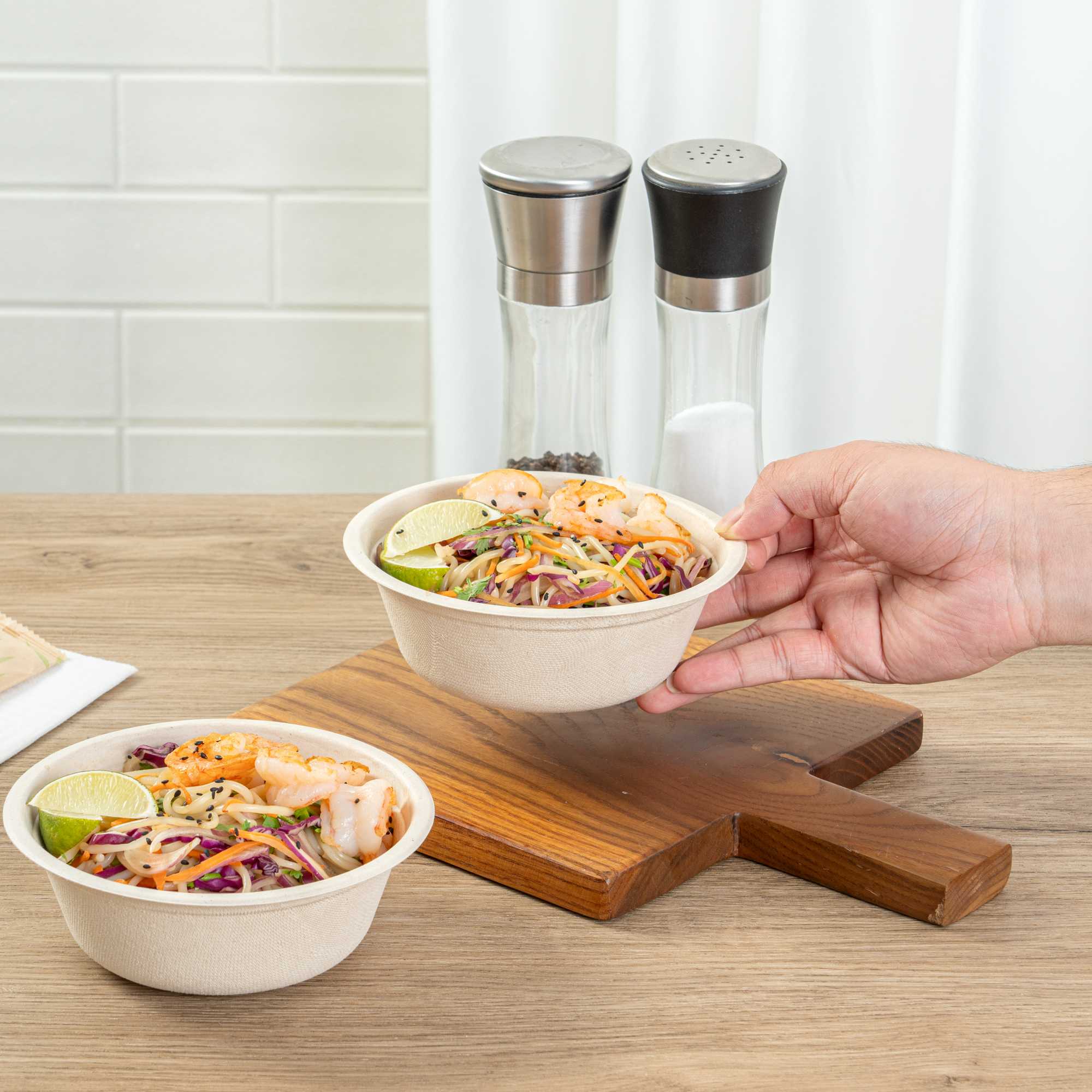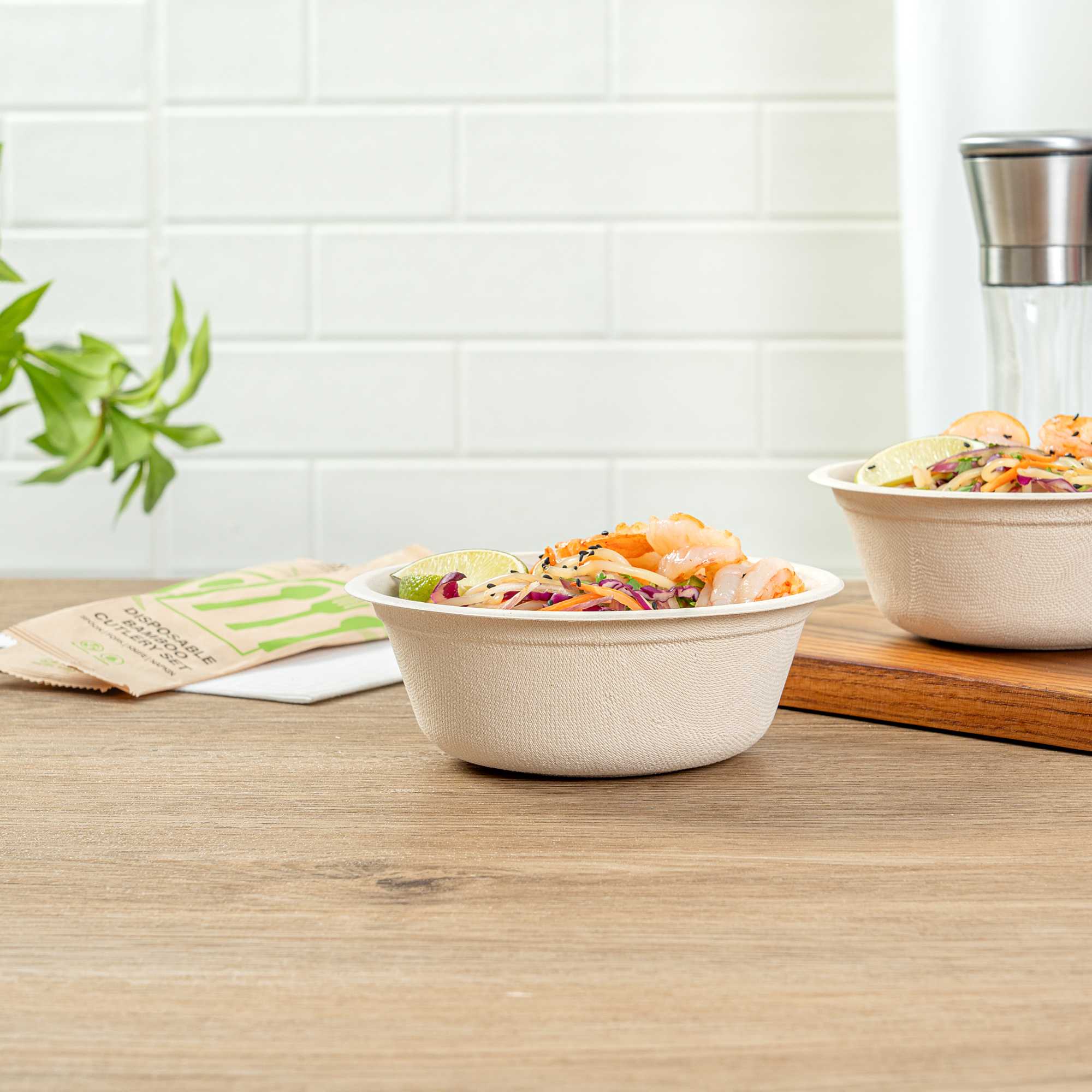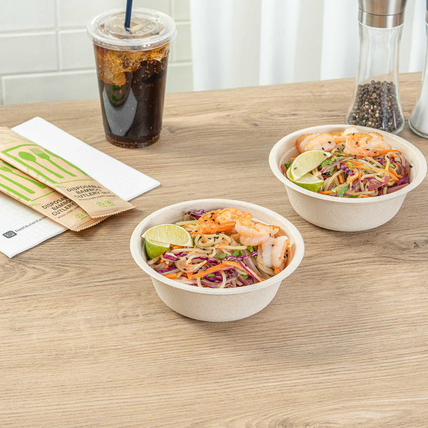 - Sustainable bagasse provides alternative to traditional plastic or styrofoam bowls