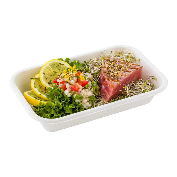 24 OZ RECTANGLE WHITE SUGARCANE / BAGASSE CONTAINER