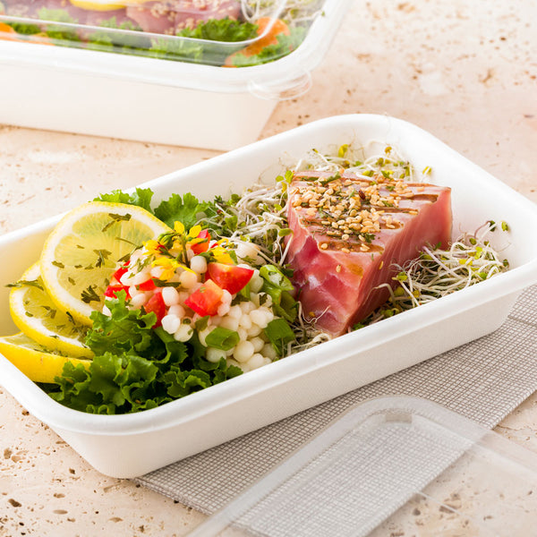 Easily pack up lunches or take food to go by pairing these containers with our wide collection of compatible bagasse or plastic lids. Compatible lids are available and sold separately.