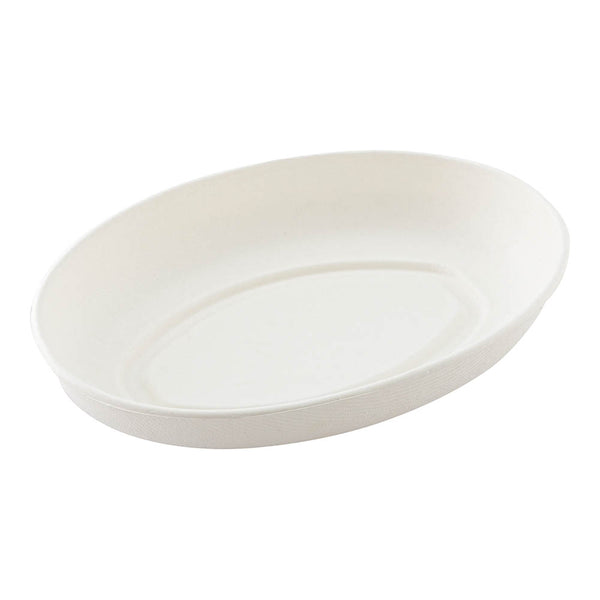 26 OZ OVAL WHITE SUGARCANE / BAGASSE SALAD PLATE