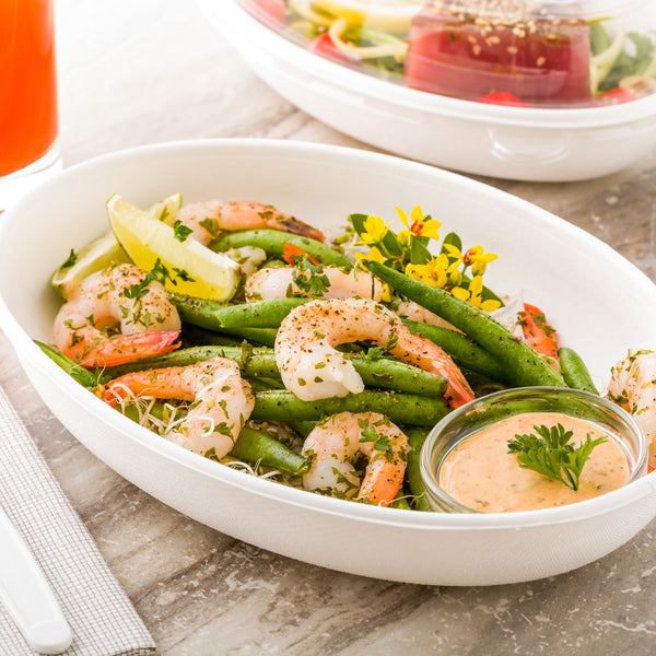 Made from sugarcane fibers, also known as bagasse, these containers are sustainable. Choose from a natural brown finish or a sleek white finish to complement your to-go orders.